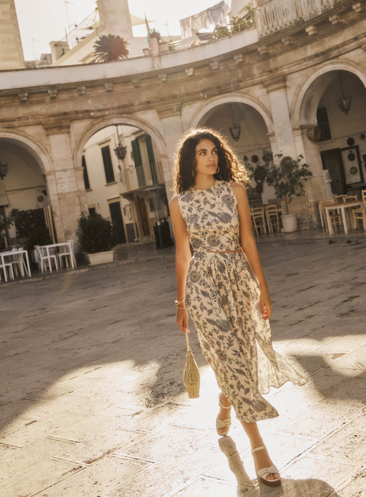 Pourquoi nous l'aimons : Cette jupe fluide à imprimé fleuri bleu associe confort et élégance avec son tissu léger et sa fente subtile. Parfaite pour un look bohème chic, elle s’accorde parfaitement avec le top TIMY pour un total look coloré.