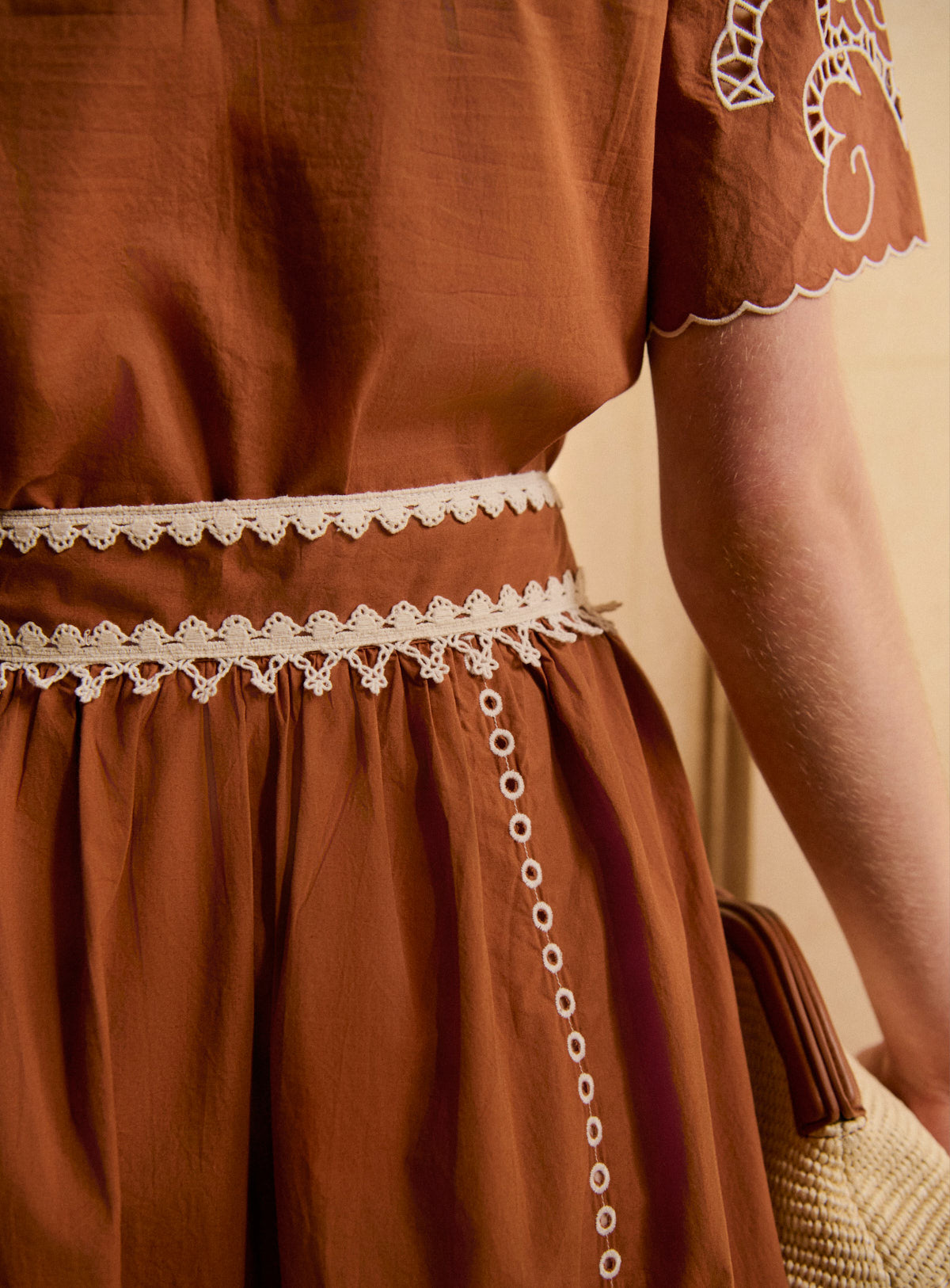 Pourquoi nous l'aimons : Cette jupe légère est parfaite pour la saison. La jupe José, fluide et élégante, accompagne le mouvement avec légèreté. On modernise nos broderies iconiques avec de la guipure incrustée. De retour cette saison, l’ensemble Théo & José s’impose comme une pièce phare du vestiaire Petite Mendigote. L’ensemble dessine une silhouette féminine et affirmée, facile à porter au quotidien comme pour les occasions plus habillées. À porter ensemble pour une allure forte, ou séparément pour multiplier les looks.