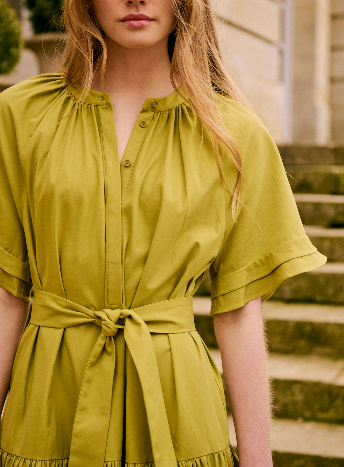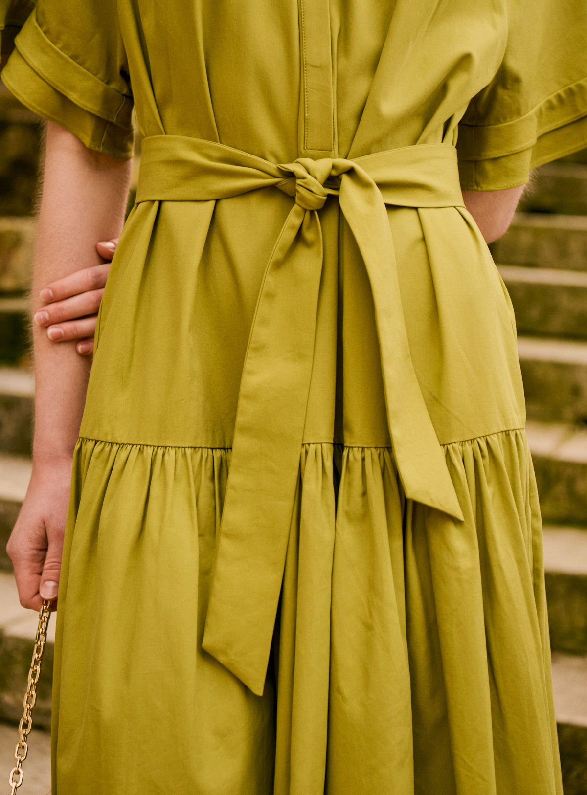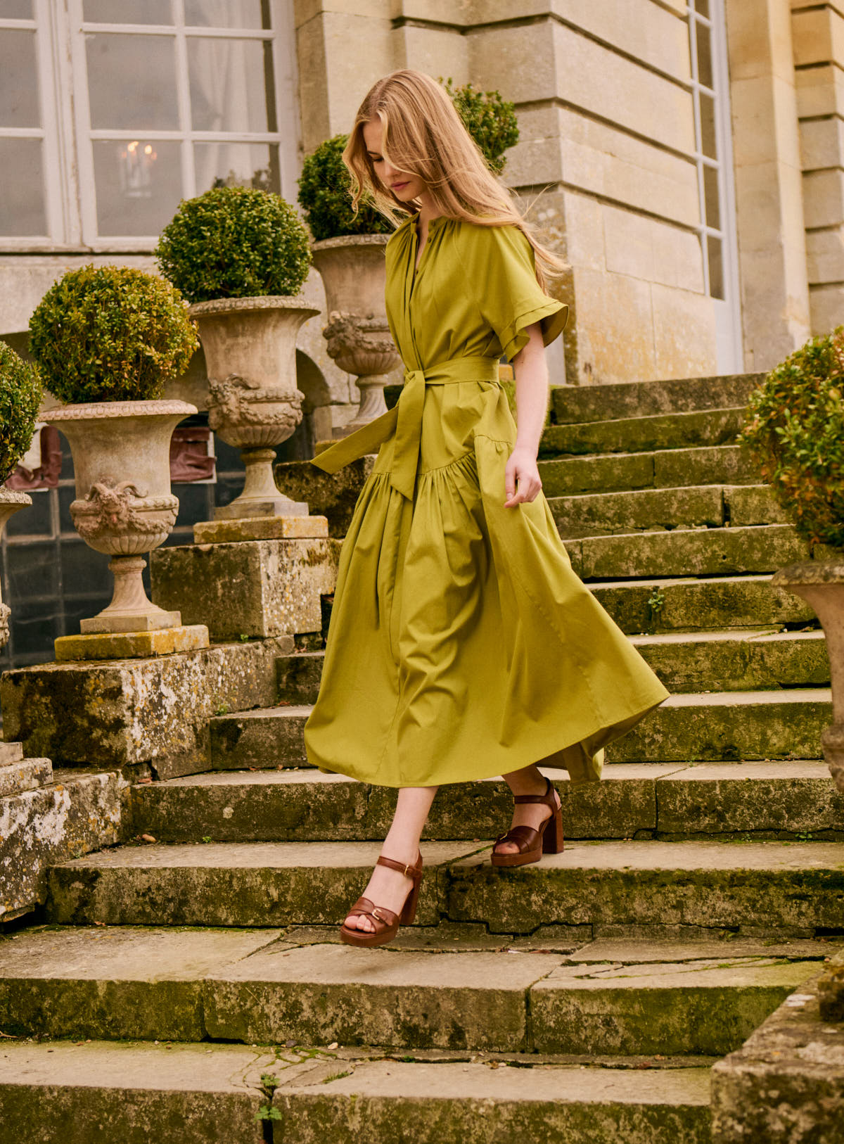 Pourquoi nous l’aimons : Une robe fluide qui accompagne chaque mouvement avec élégance. Sa couleur unie et sa longueur midi en font une pièce forte, idéale avec des sandales à talons pour une allure affirmée.