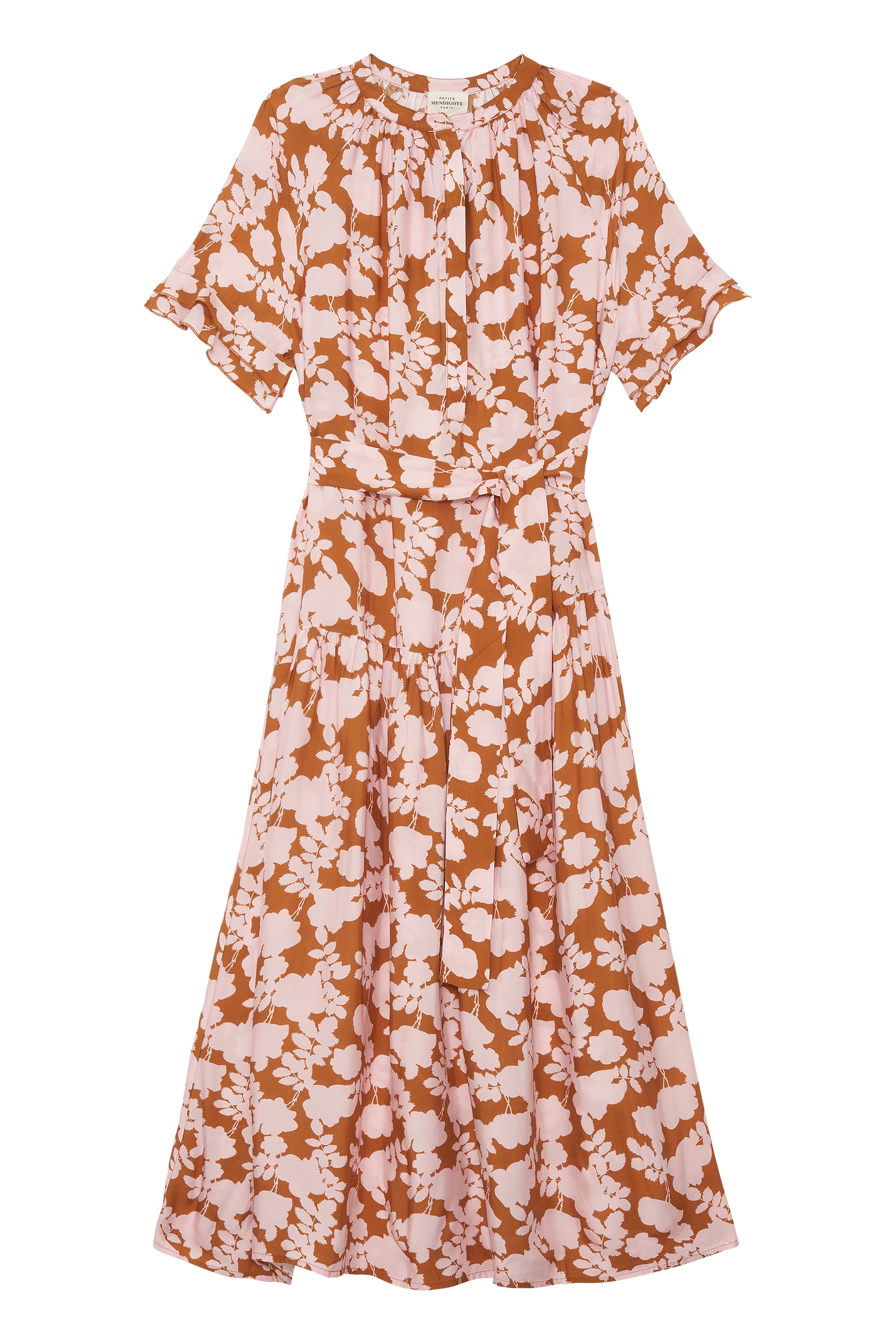 Pourquoi nous l’aimons : Une robe fluide qui accompagne chaque mouvement avec élégance. Son imprimé fleuri et sa longueur midi en font une pièce forte, idéale avec des sandales à talons pour une allure affirmée.