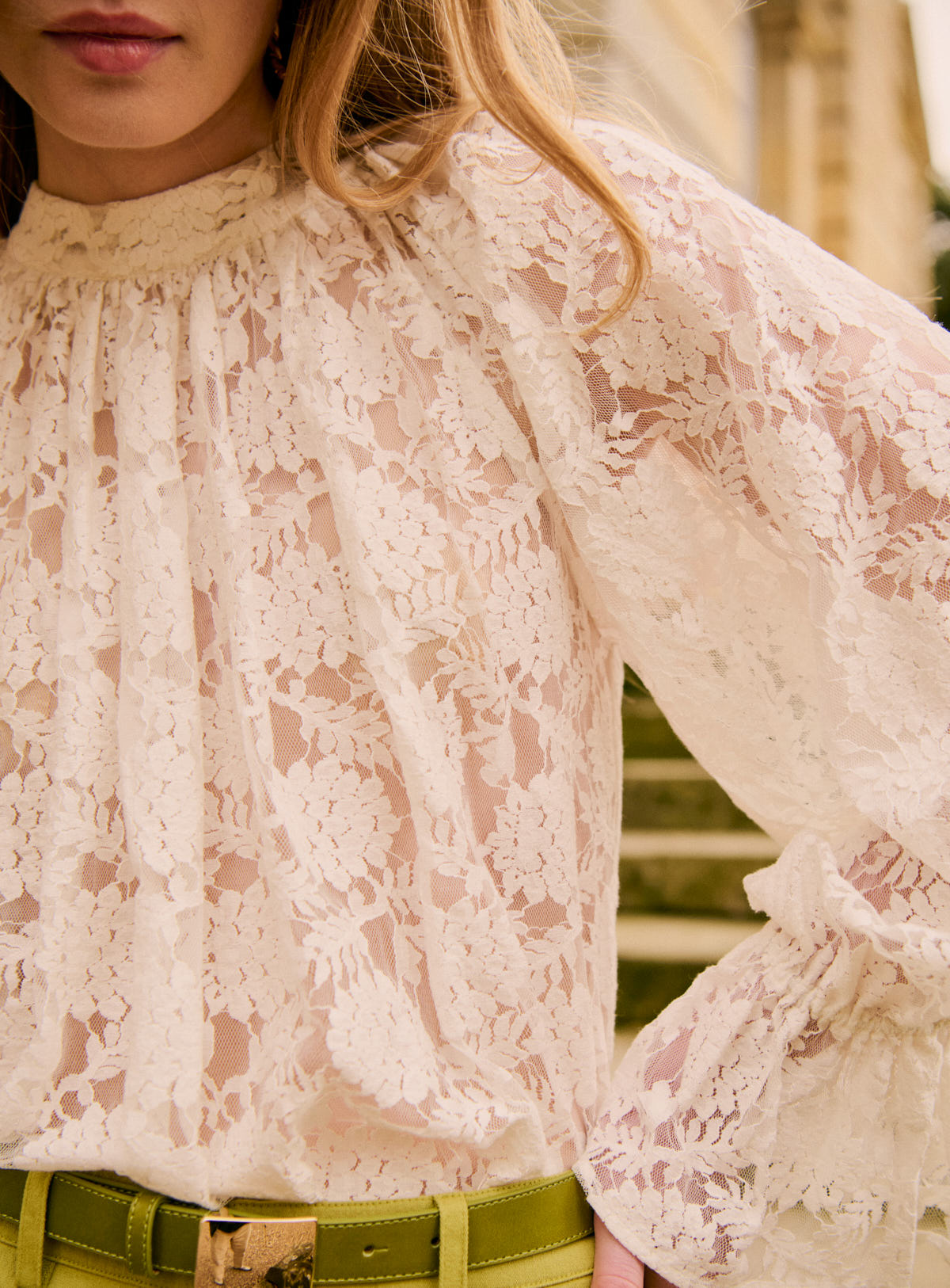 Pourquoi nous l’aimons : CAMILIA apporte instantanément douceur et romantisme à une silhouette. Ses broderies délicats et son volume aérien en font une pièce lumineuse, idéale pour twister un jean ou un pantalon coloré. Une dentelle délicate et raffinée, au charme intemporel. On adore son jeu de transparence subtil et ses détails romantiques, pour une allure douce et élégante. À porter en total look pour un effet waouh, ou mixée avec un jean pour casser le côté précieux