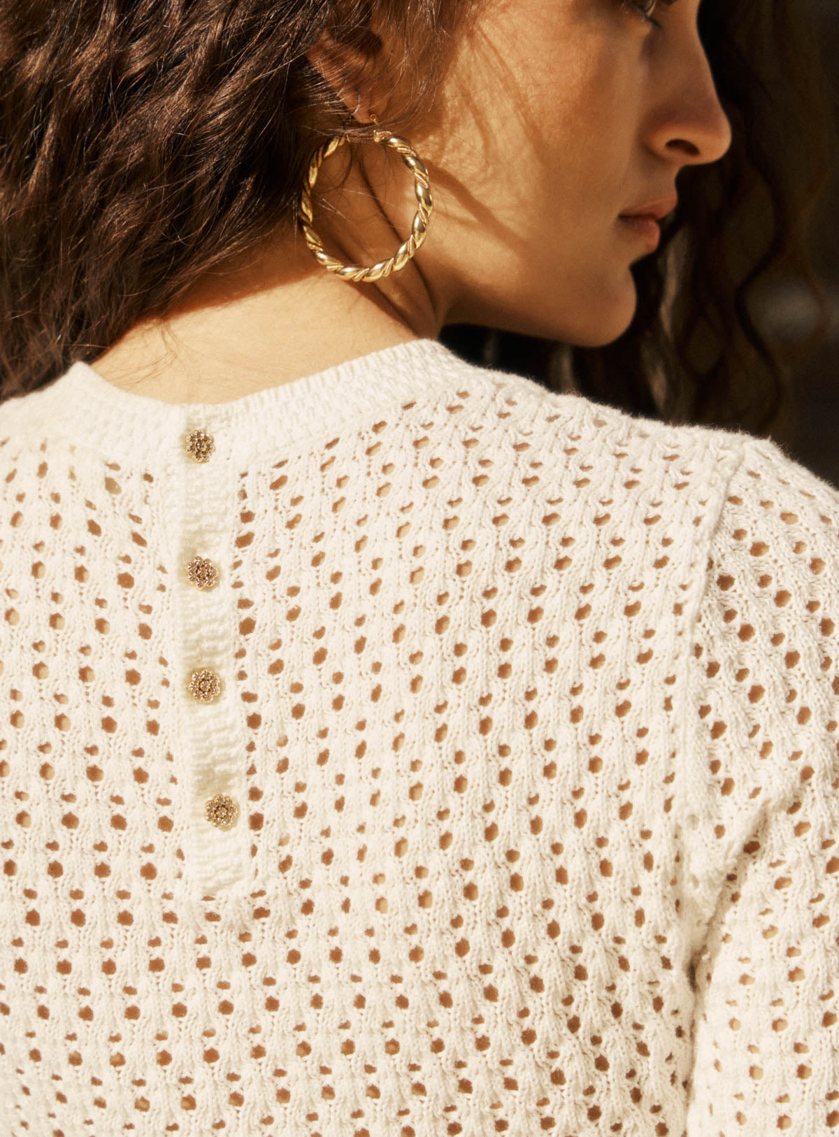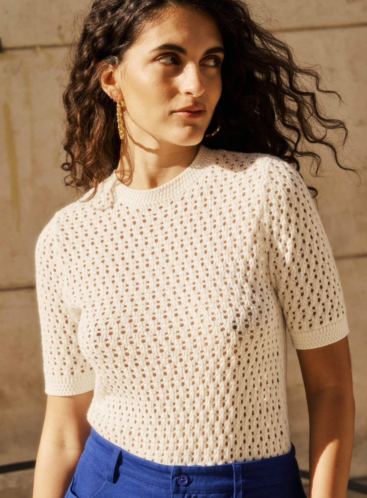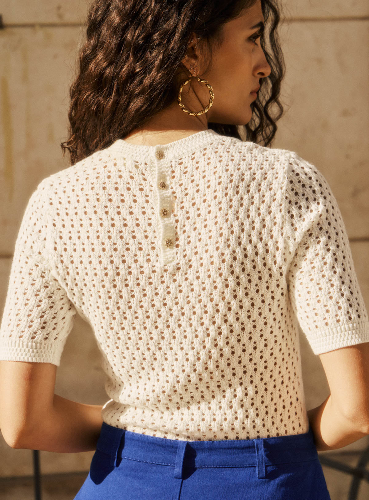 Pourquoi nous l'aimons : Doux, confortable et près du corps, ce top en maille ajourée est parfait pour une tenue de saison. Le top parfait à porter avec un jean brut, un pantalon taille haute ou une jupe fluide, pour une silhouette facile et toujours juste.