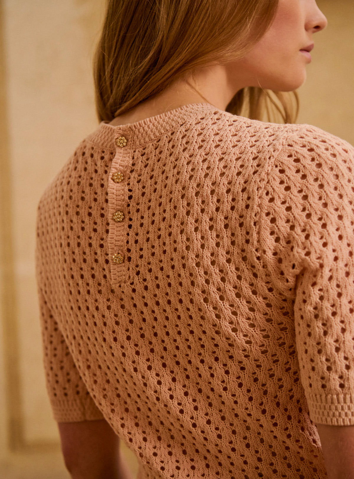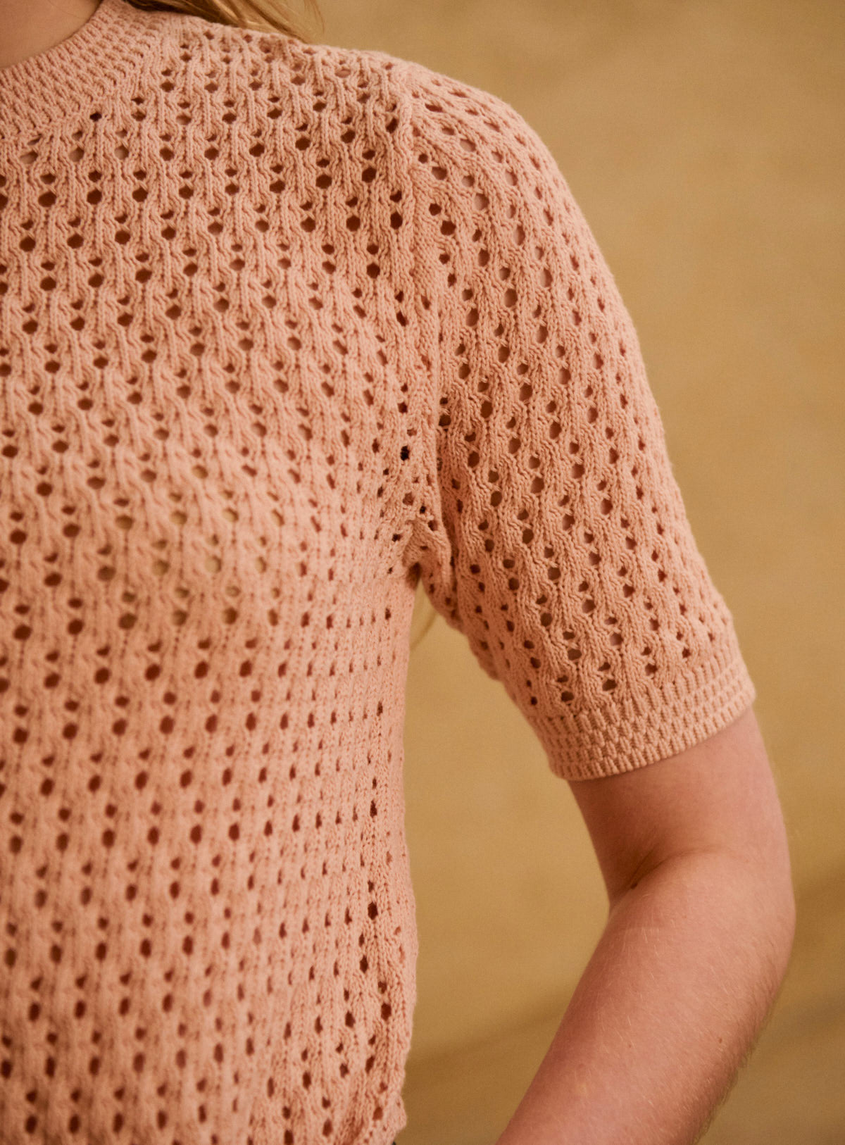 Pourquoi nous l'aimons : Doux, confortable et près du corps, ce top en maille ajourée est parfait pour une tenue de saison. Le top parfait à porter avec un jean brut, un pantalon taille haute ou une jupe fluide, pour une silhouette facile et toujours juste.