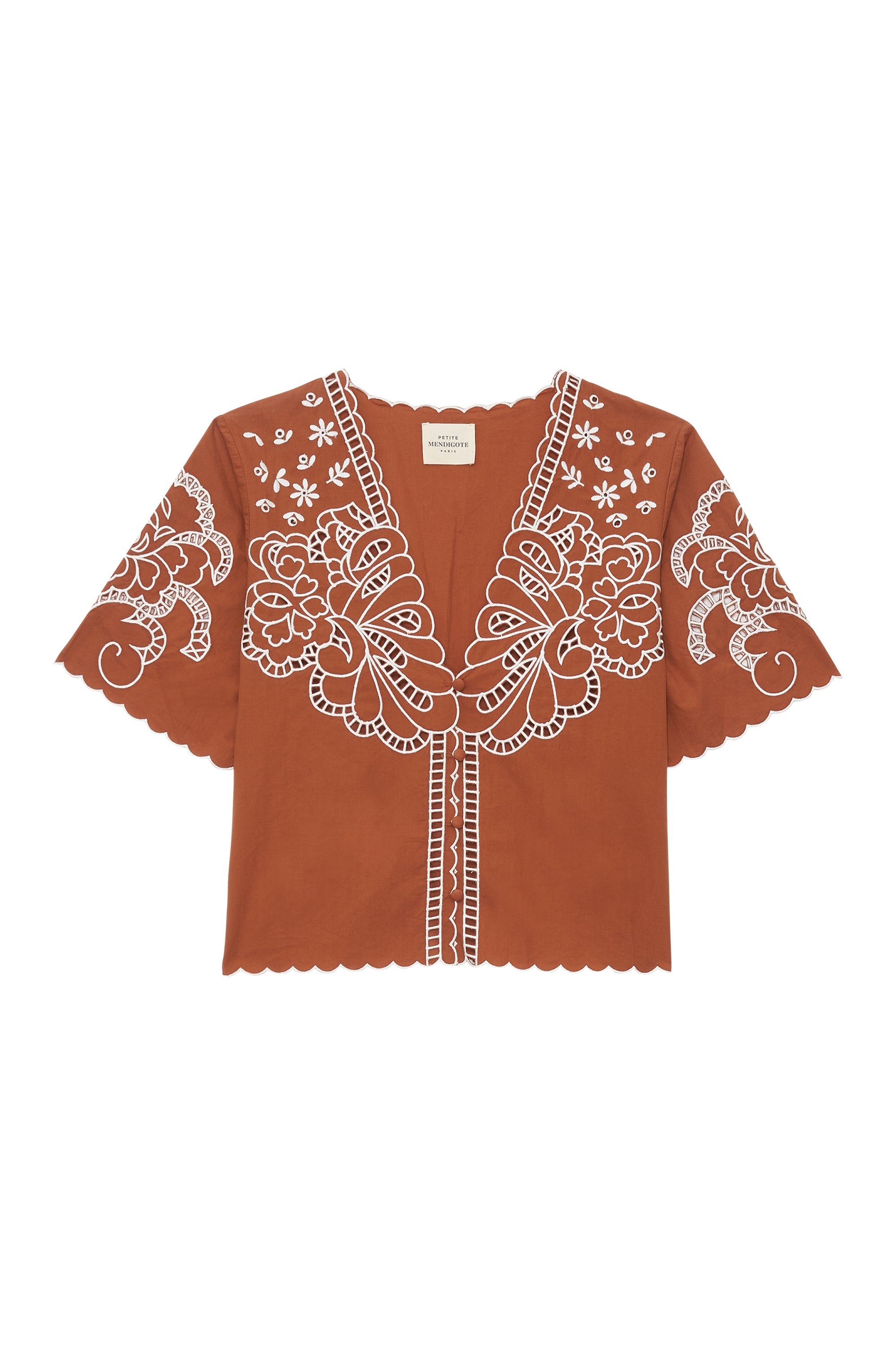 Pourquoi nous l'aimons : Ce top coloré apporte une touche de fraîcheur avec ses détails ajourés. Le top Théo séduit par ses broderies délicates et sa coupe structurée. De retour cette saison, l’ensemble Théo & José s’impose comme une pièce phare du vestiaire Petite Mendigote. L’ensemble dessine une silhouette féminine et affirmée, facile à porter au quotidien comme pour les occasions plus habillées. À porter ensemble pour une allure forte, ou séparément pour multiplier les looks.