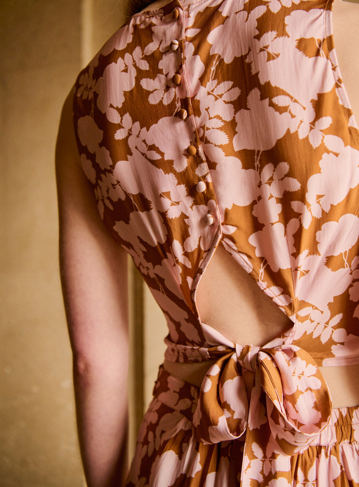 Pourquoi nous l'aimons : Ce top audacieux séduit par son imprimé rétro et ses détails travaillés. Le dos ouvert apporte une touche féminine et raffinée, parfait pour une tenue d’été associée à notre pantalon PAROS ou notre jupe taille haute JOLYNA.