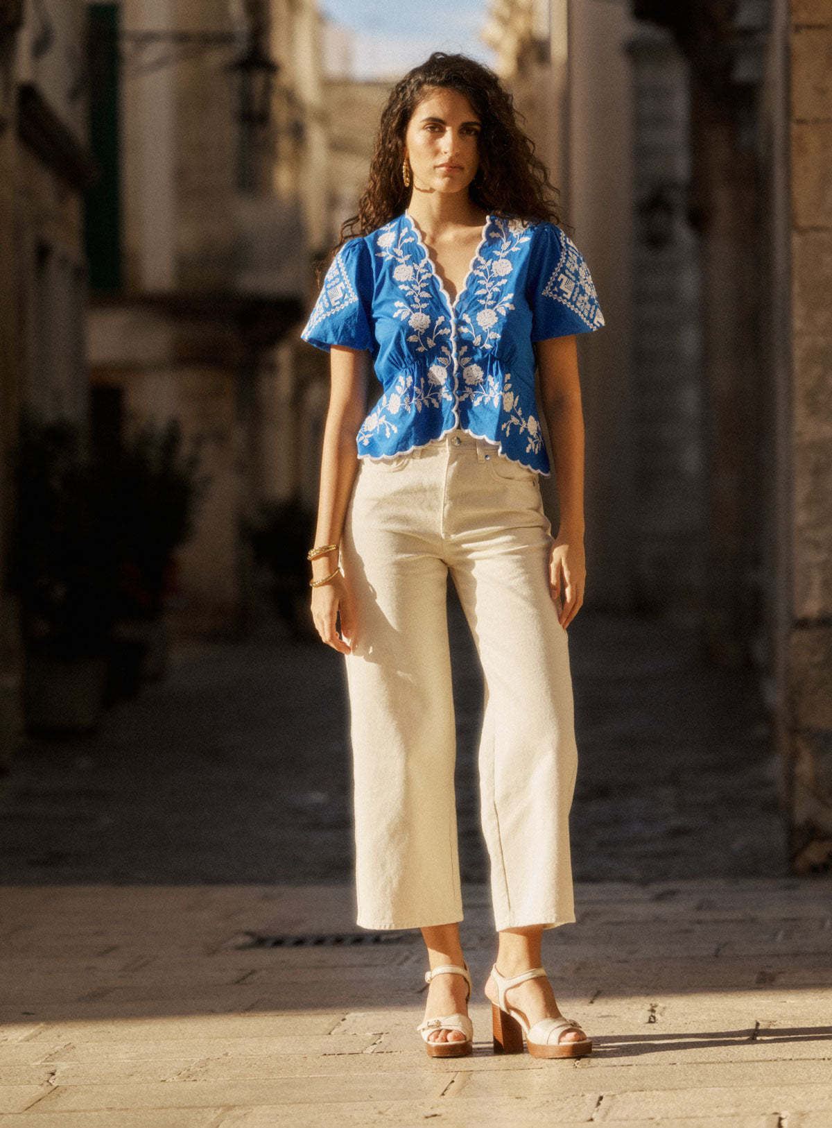 Pourquoi nous l'aimons : Sa couleur, son charme bohème et son travail de broderie délicat en font une pièce forte et élégante. Parfaite pour ajouter une touche romantique et raffinée à vos tenues estivales.