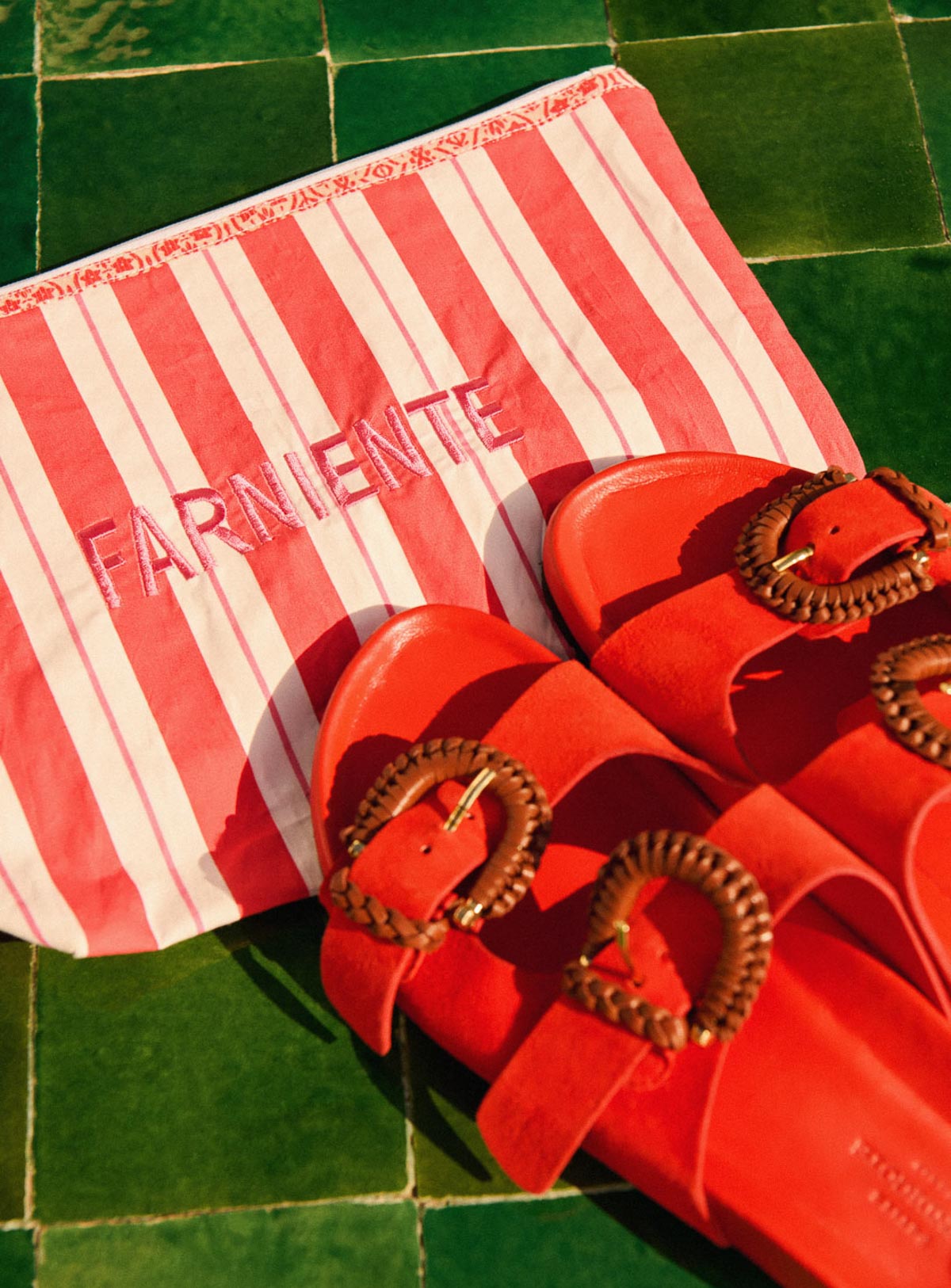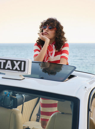 Eva - Grande pochette en coton et rayures rouges