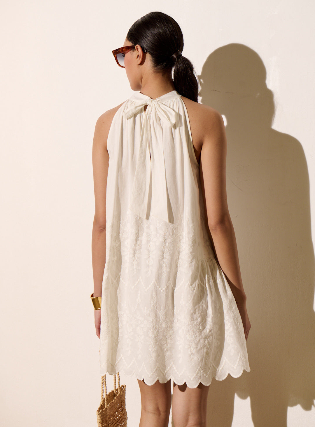 Pourquoi nous l'aimons : Cette robe à l’allure délicatement bohème séduit par sa légèreté et sa douceur naturelle. Son coton brodé dévoile de subtils motifs en relief, tandis que sa coupe fluide et son encolure mettent en valeur les épaules avec élégance. Facile à porter, elle incarne une silhouette estivale à la fois fraîche, féminine et résolument lumineuse.