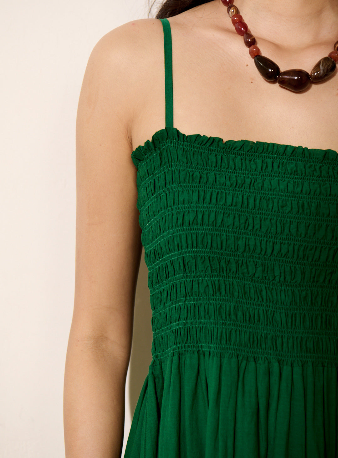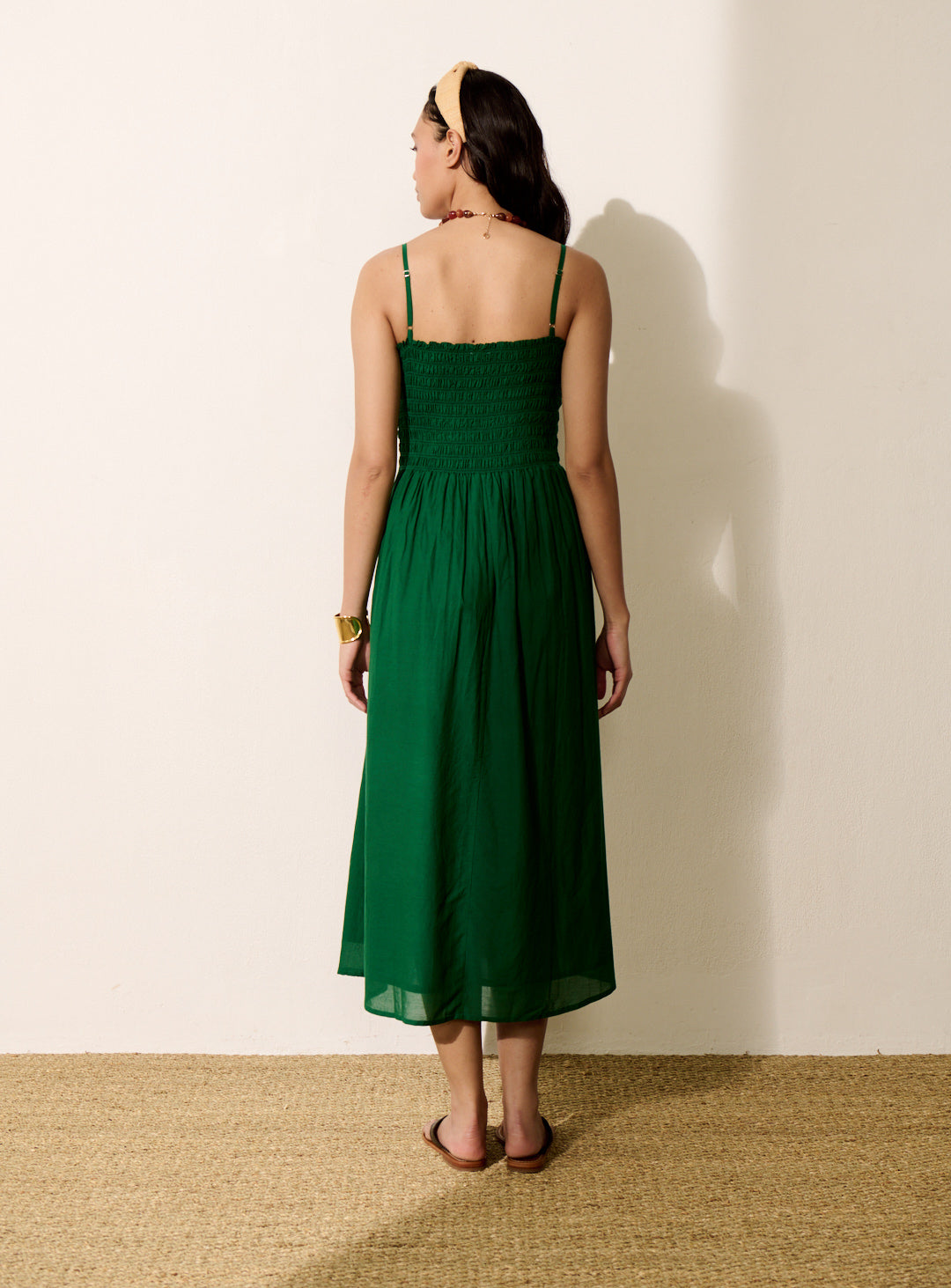 Pourquoi nous l'aimons : Avec ses fines bretelles et son bustier smocké, RONITA dévoile une silhouette délicate et aérienne, idéale pour les journées ensoleillées. Sa coupe fluide et son tissu léger accompagnent chaque mouvement avec grâce, pour une allure bohème et lumineuse. Facile à porter, elle se suffit à elle-même ou s’accessoirise d’un panier tressé et de sandales en cuir, pour un été tout en douceur.