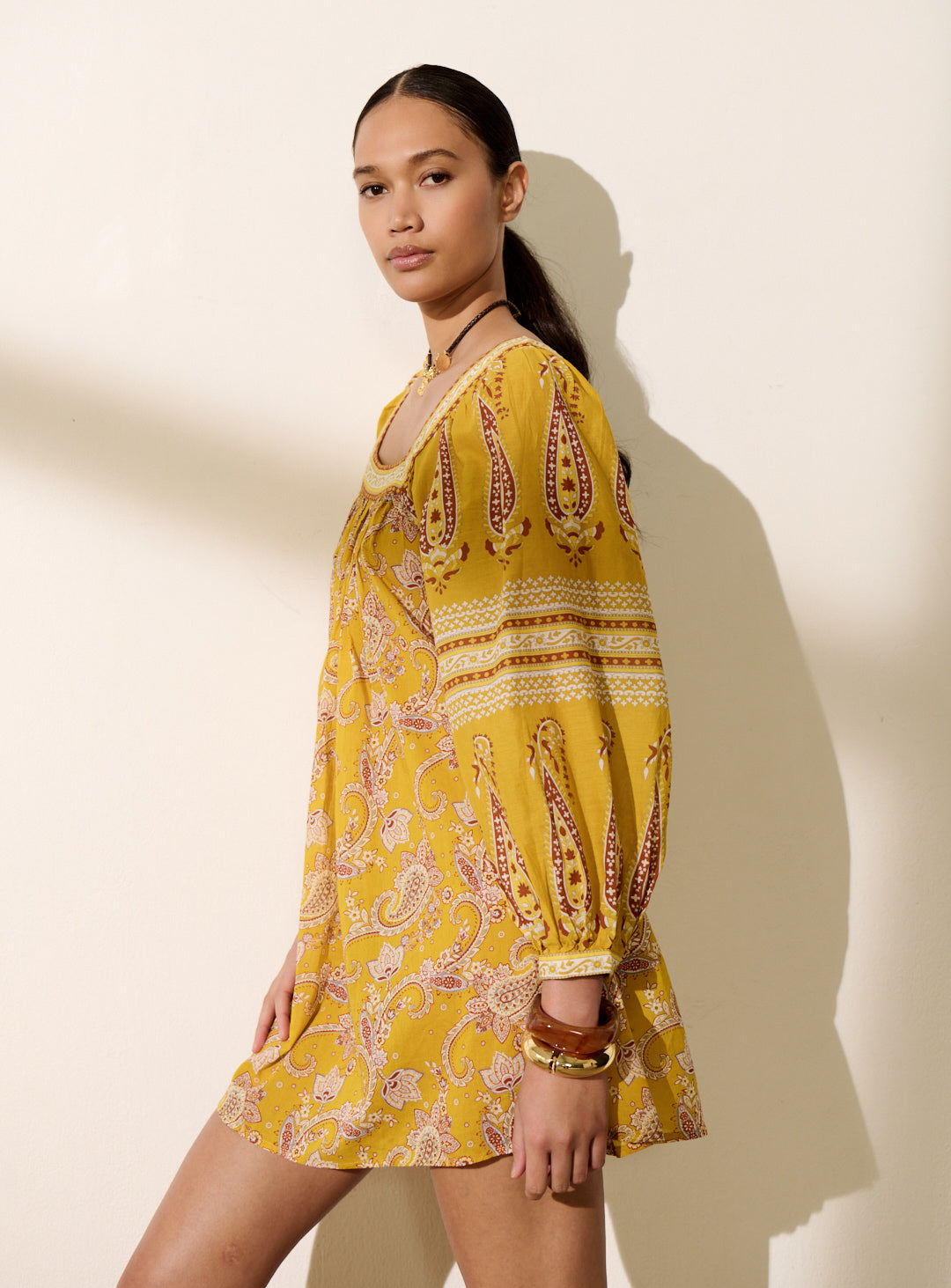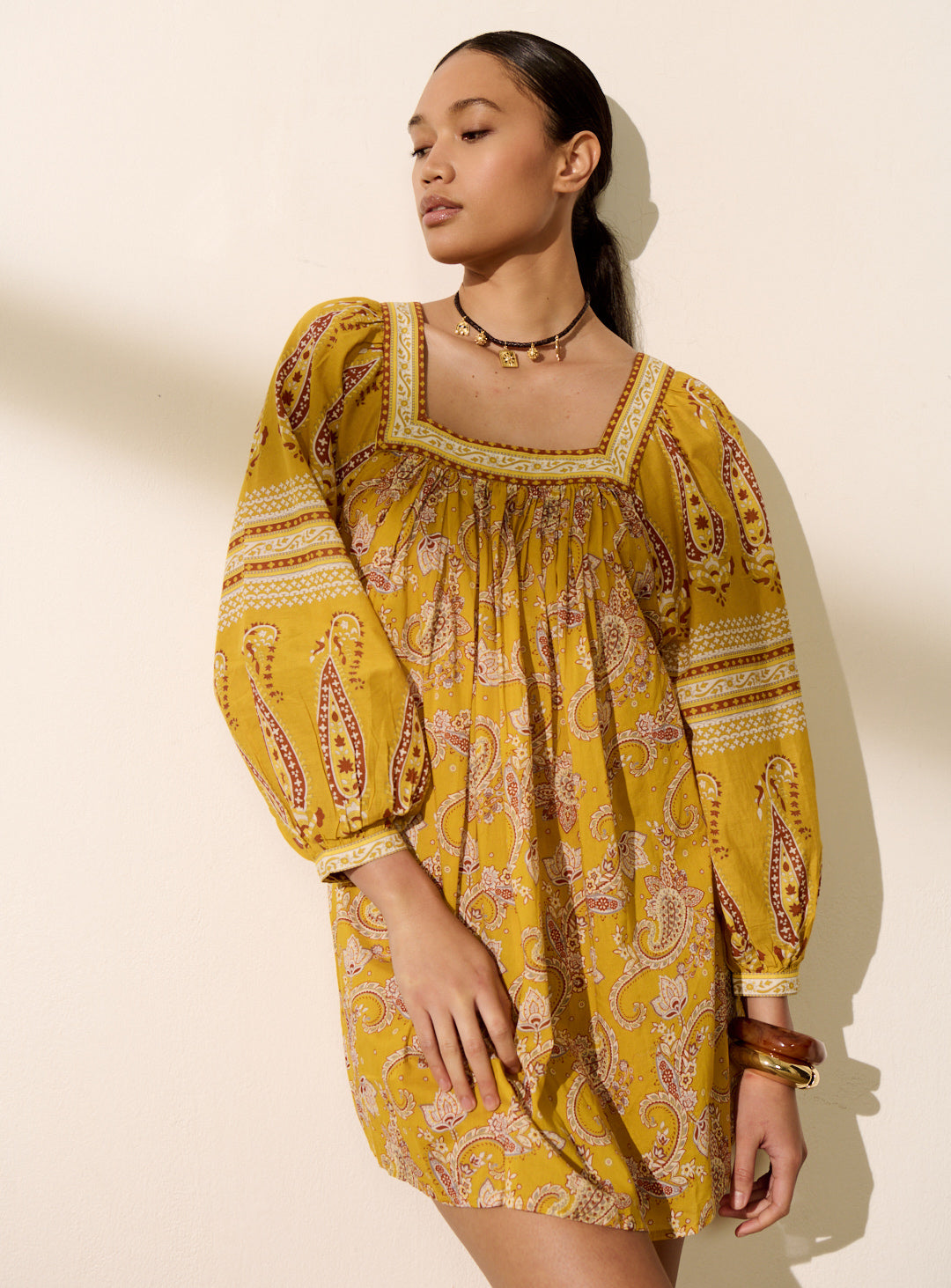 Pourquoi nous l'aimons : Avec son allure bohème et sa coupe fluide et oversize, cette robe est parfaite pour les journées ensoleillées. Son imprimé vibrant et son encolure carrée lui confèrent une touche romantique et élégante. À porter avec nos sandales en cuir et un panier en raphia pour une silhouette estivale sans effort !