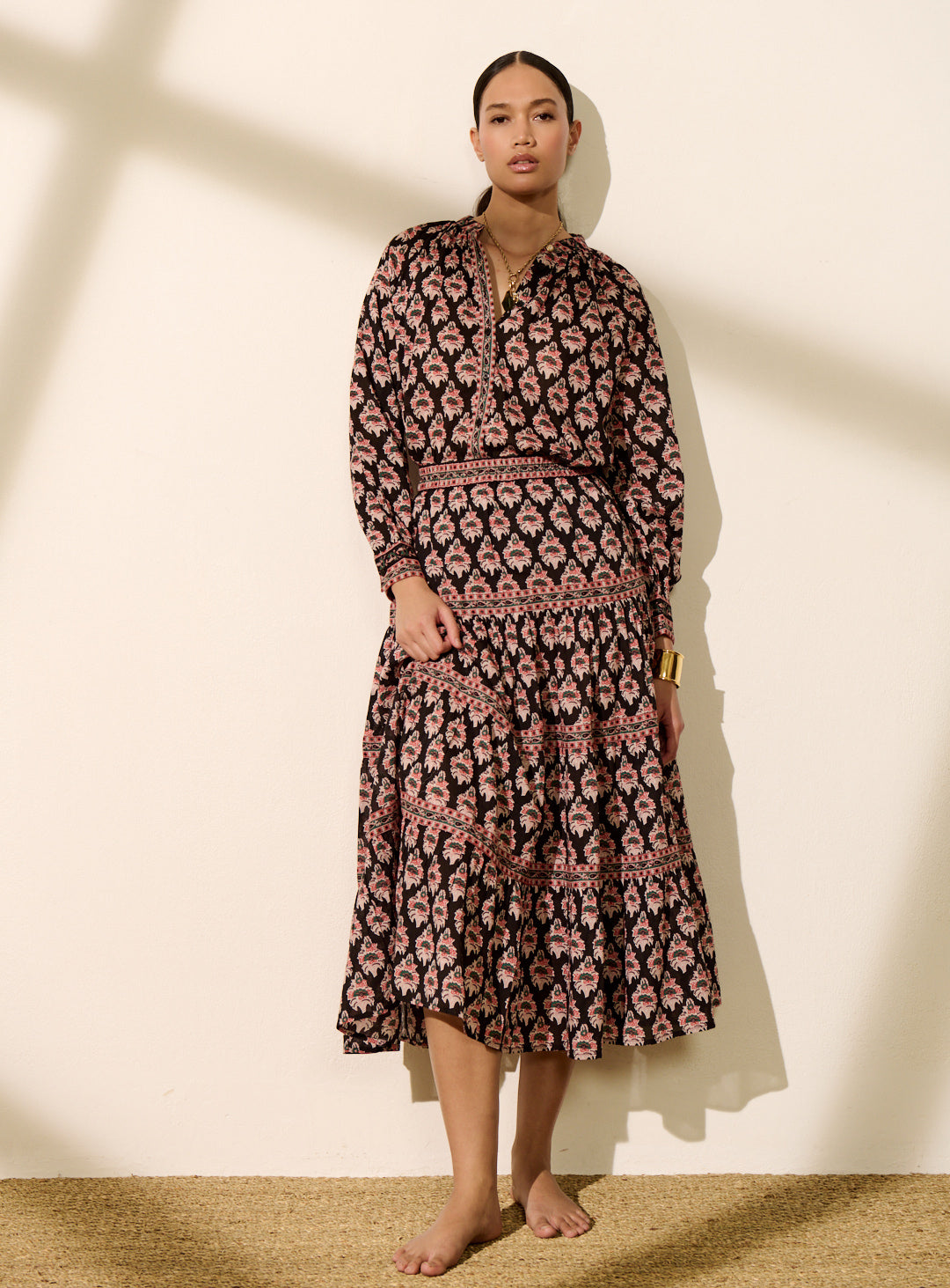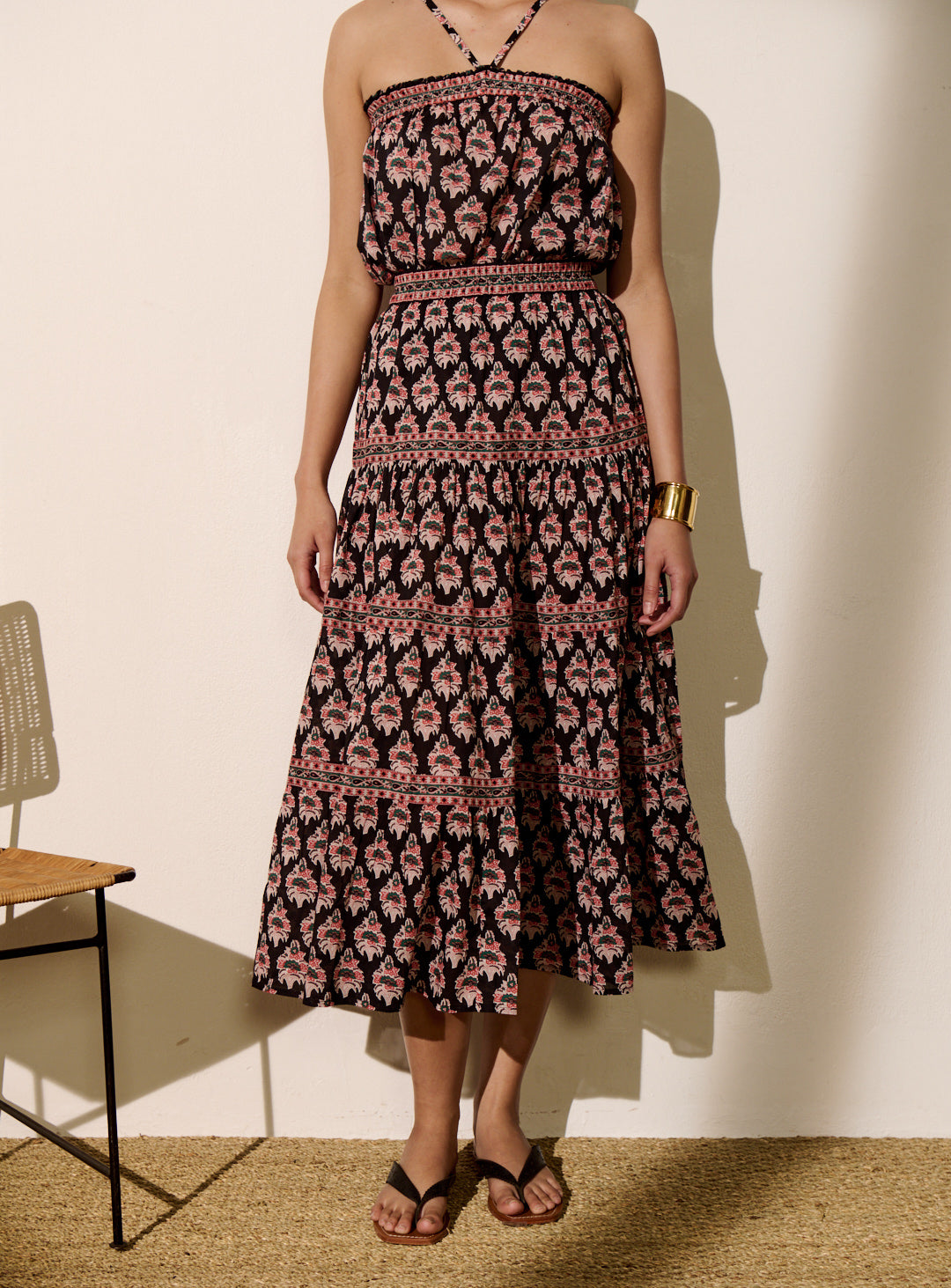 Pourquoi nous l'aimons : Avec son imprimé coloré et sa coupe fluide, cette jupe est parfaite pour une silhouette féminine et élégante. Pour un total look affirmé, associez la jupe au top sans manches SAMY ou la blouse TEA.Légère et agréable à porter, elle se mixe facilement avec un top uni, blanc ou noir, pour un look plus épuré. Polyvalente, elle s’adapte à toutes vos envies, du total look assumé à une silhouette plus minimaliste.