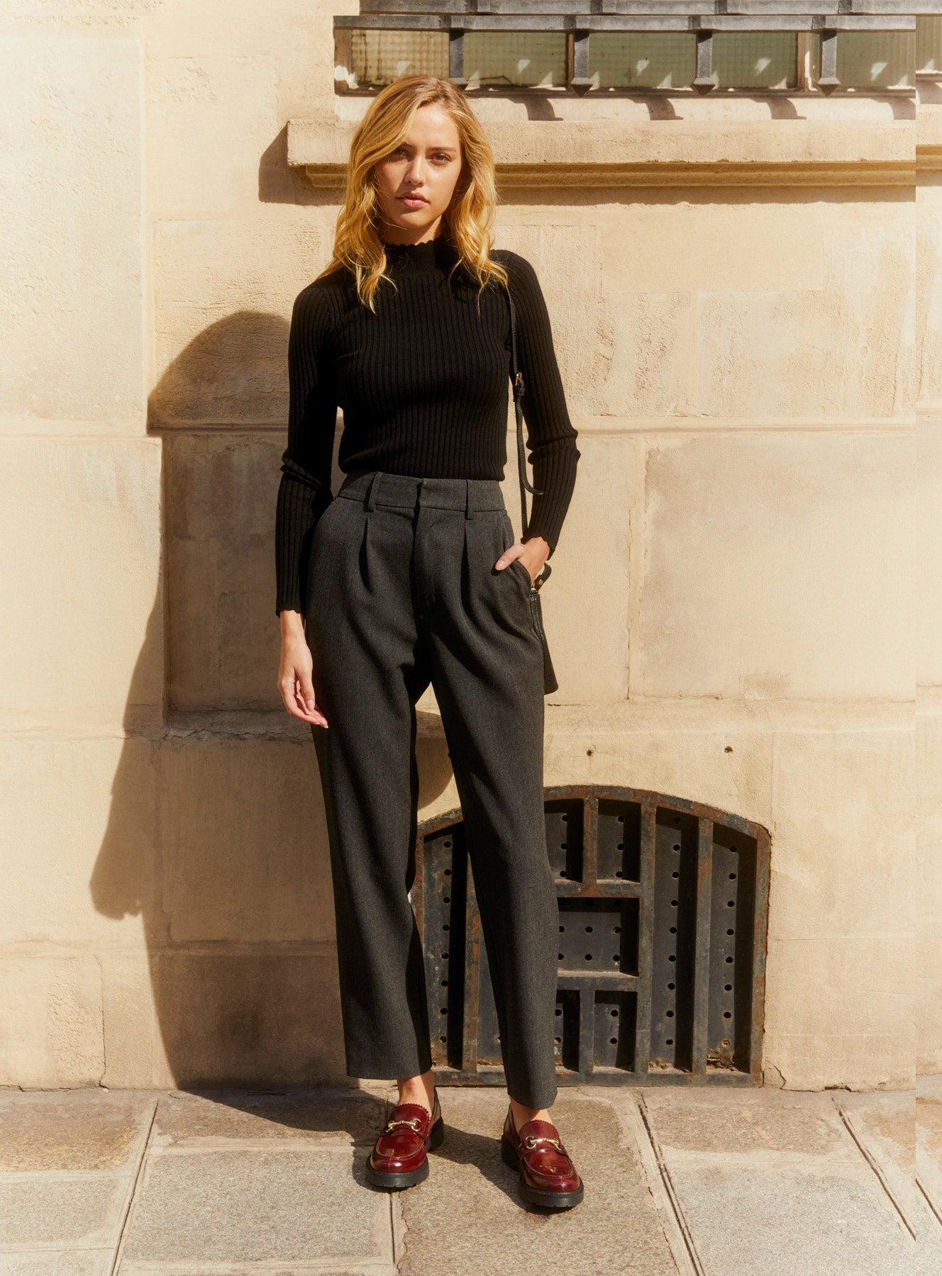 Diese hoch taillierte Hose mit geradem Schnitt. Simon ist DIE Hose, die zu allen Körpertypen passt. Haken- und Reißverschluss.