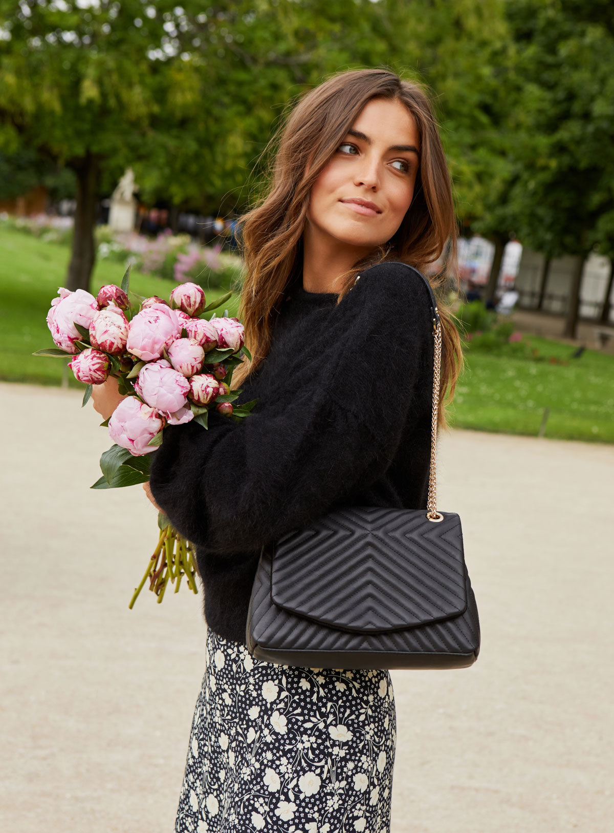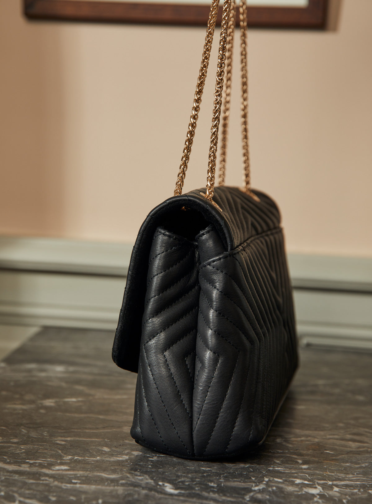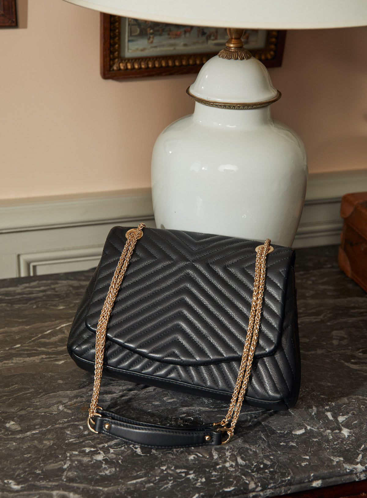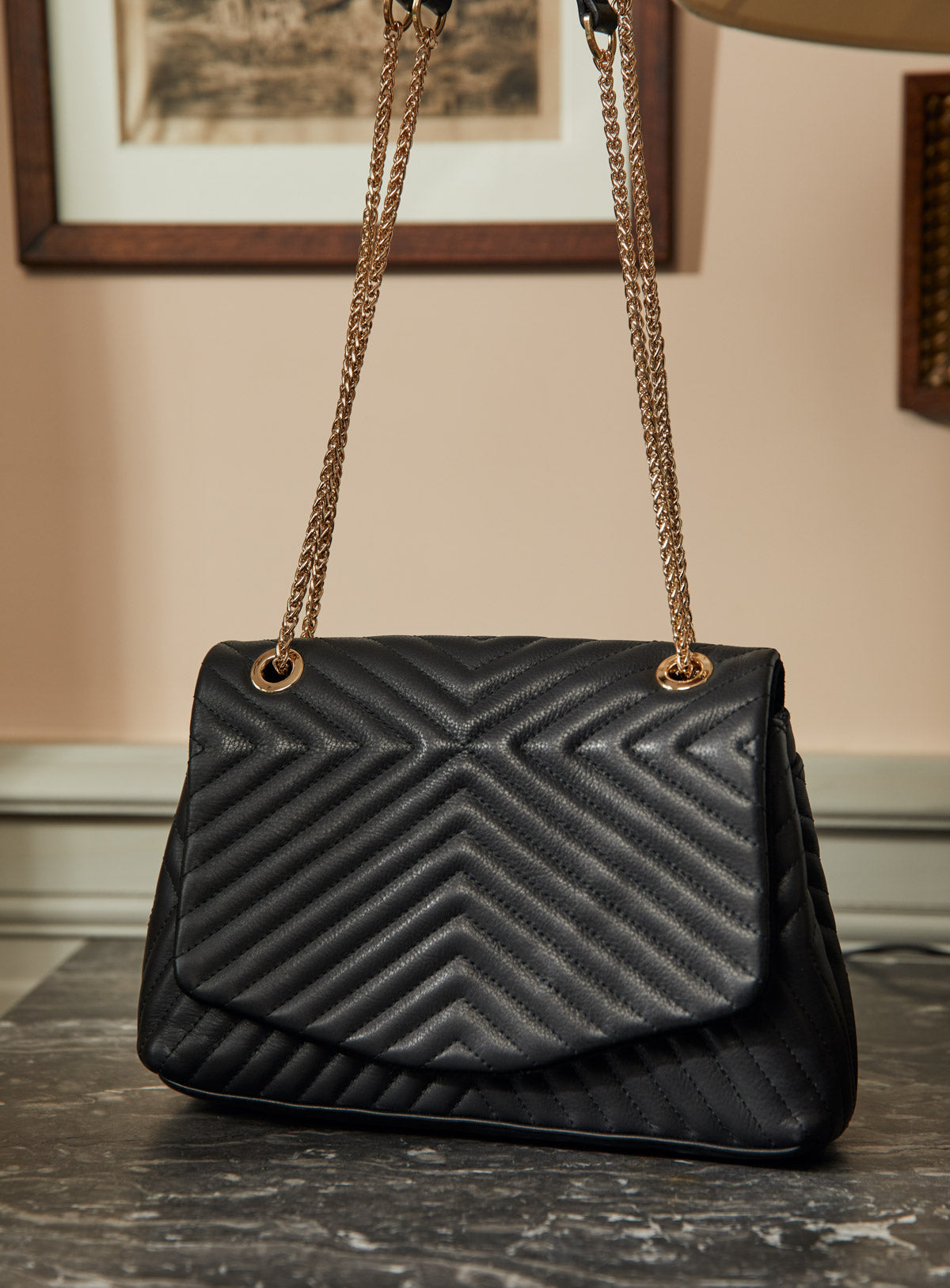 Große gesteppte Ledertasche mit verstellbarem Goldkettengriff.