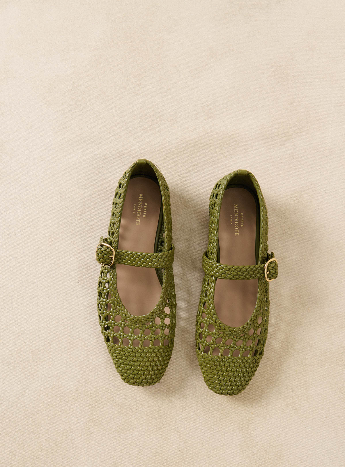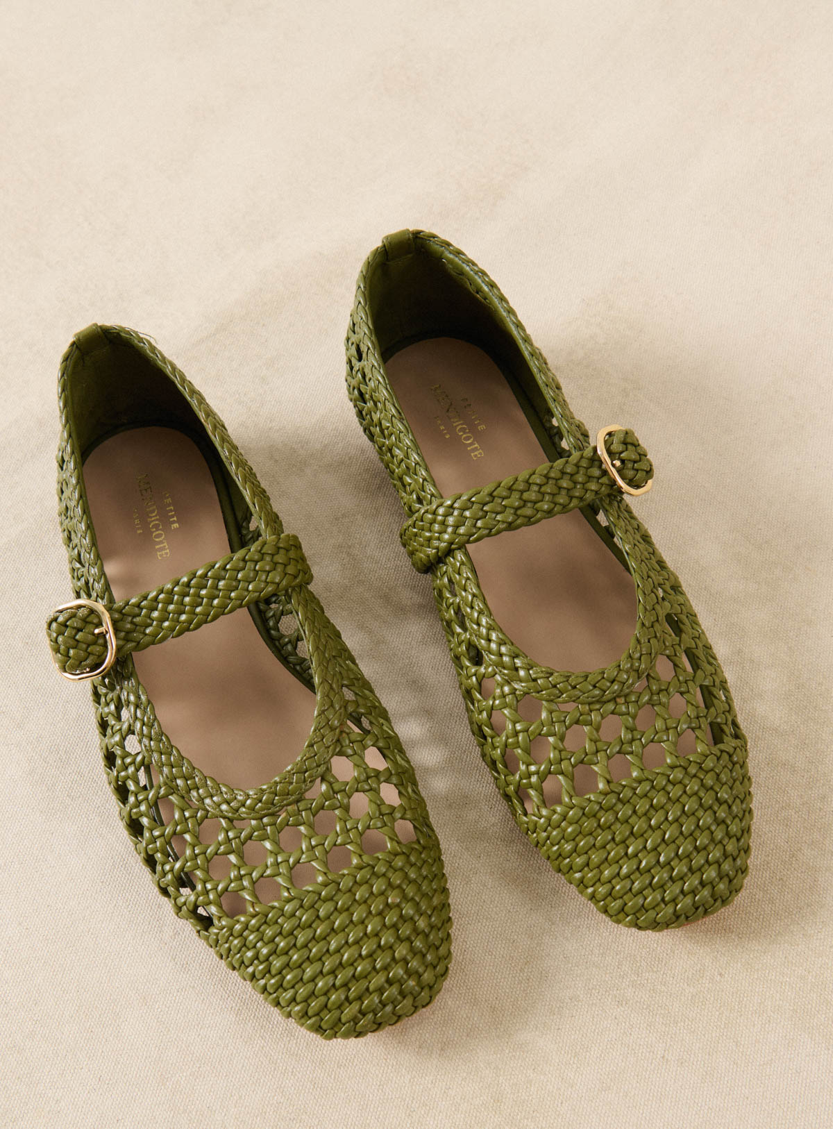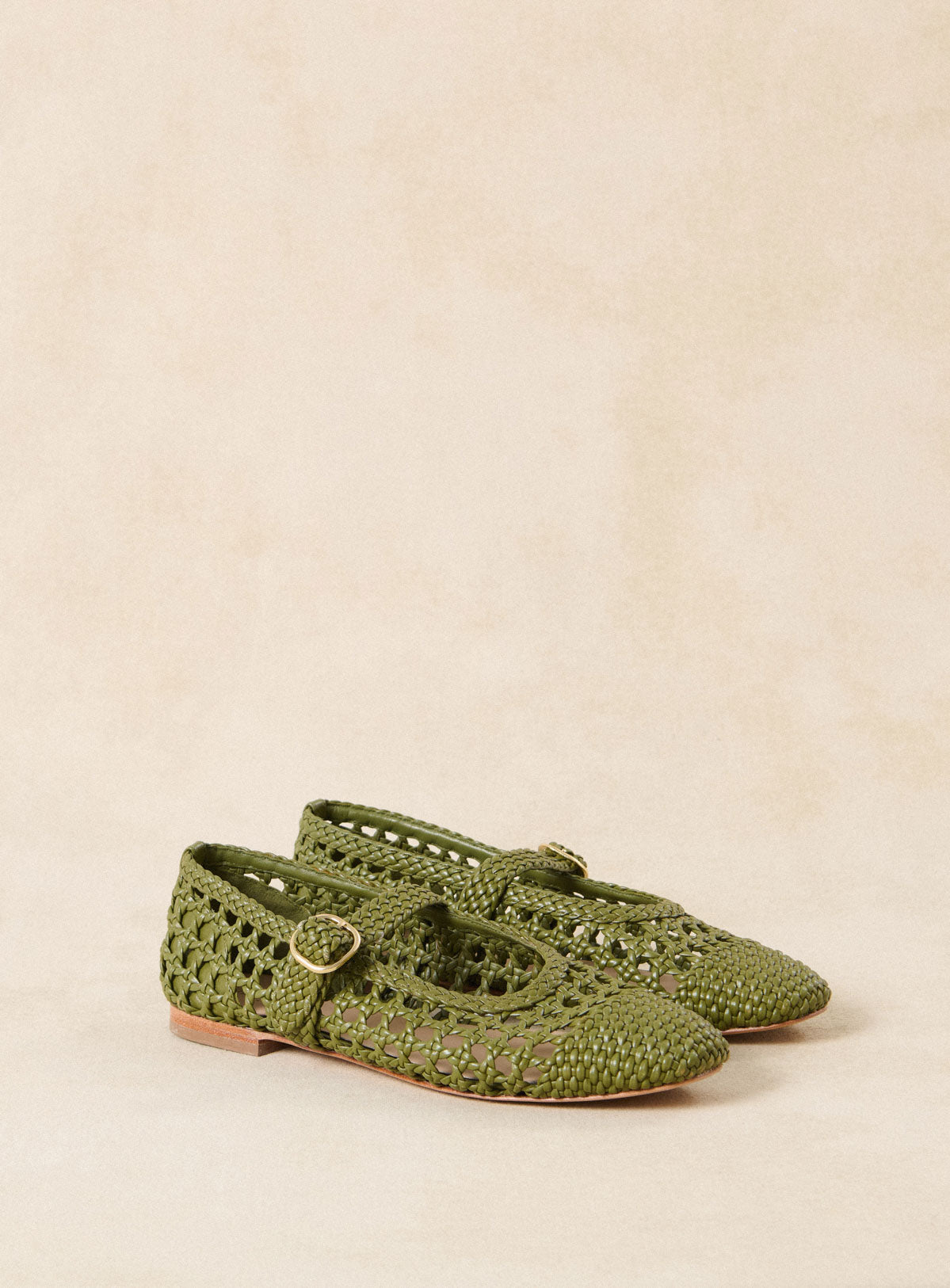 Carlita - Ballerines en cuir tressé vert
