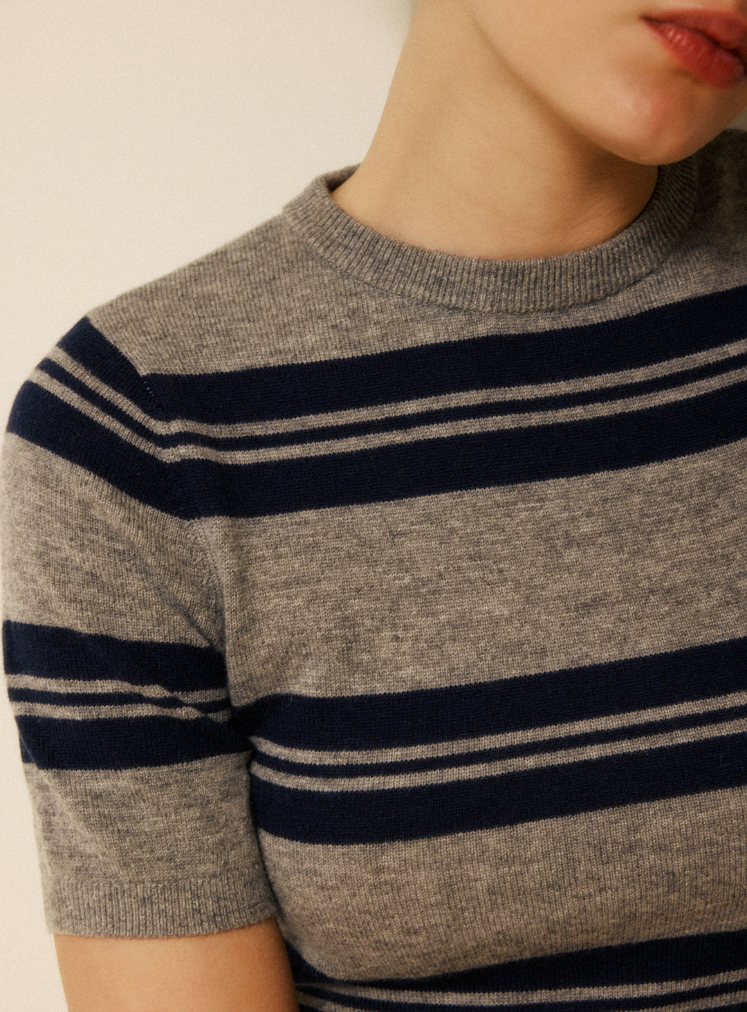 Mesange - Top en maille fine à larges rayures bleues et grises