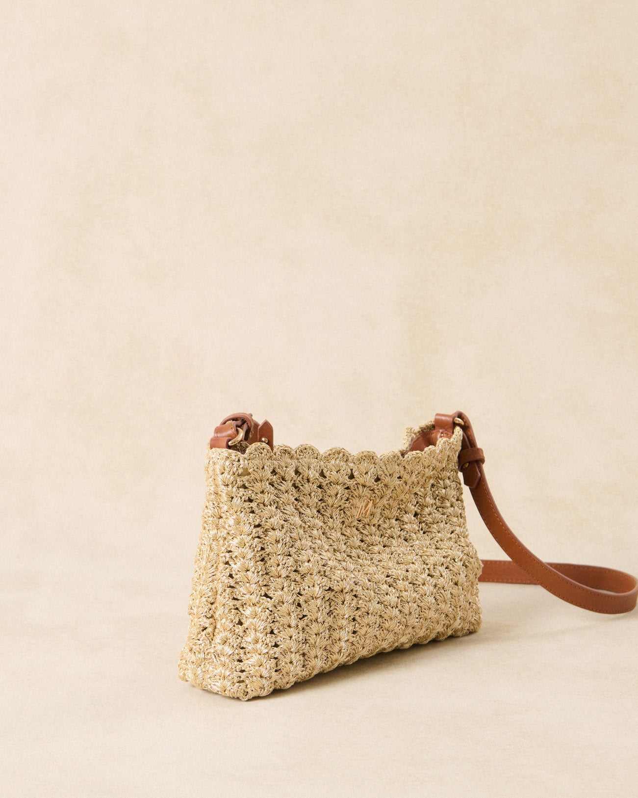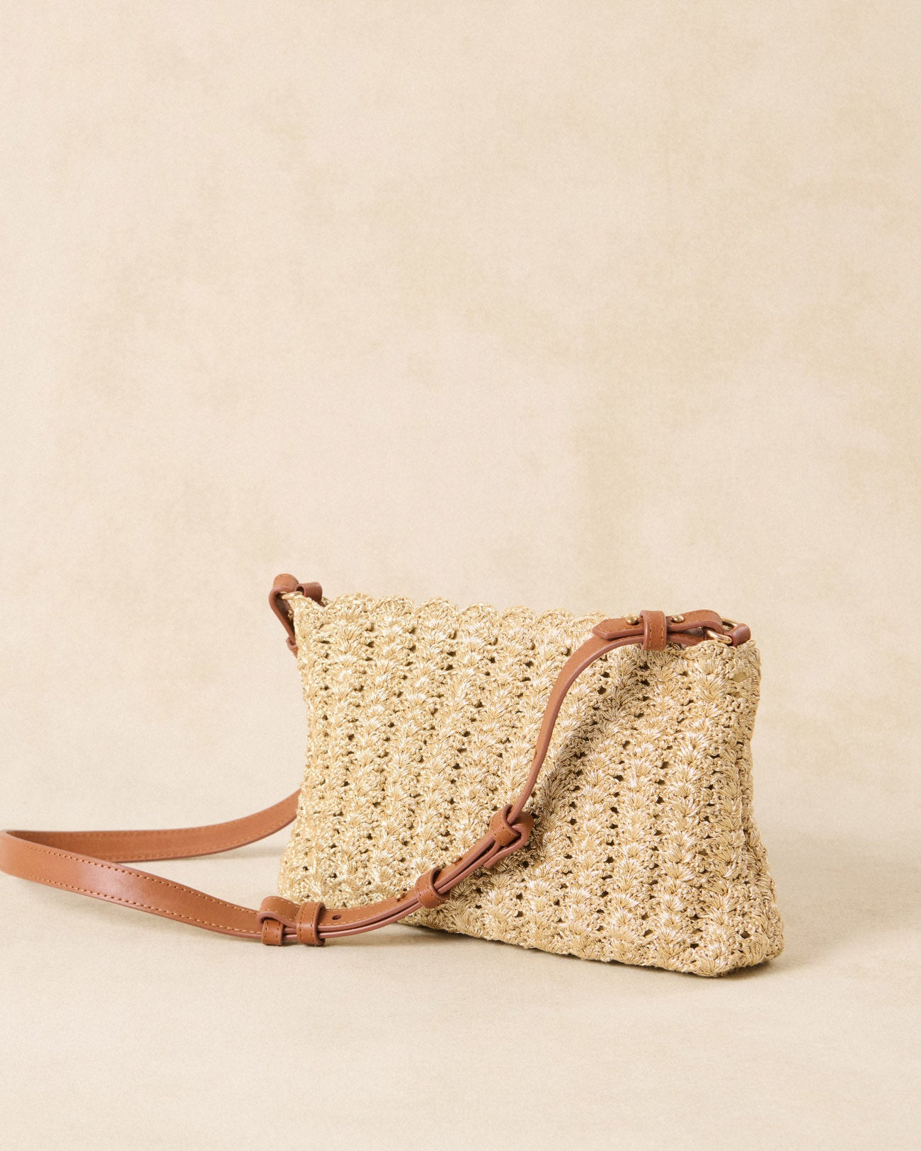 Warum wir sie lieben: Diese goldene Häkeltasche passt einfach zu jedem Anlass. Sie ist die perfekte Clutch für all Ihre wichtigsten Dinge. Für einen trendigen Look tragen Sie sie mit der Kette als Baguette-Tasche.