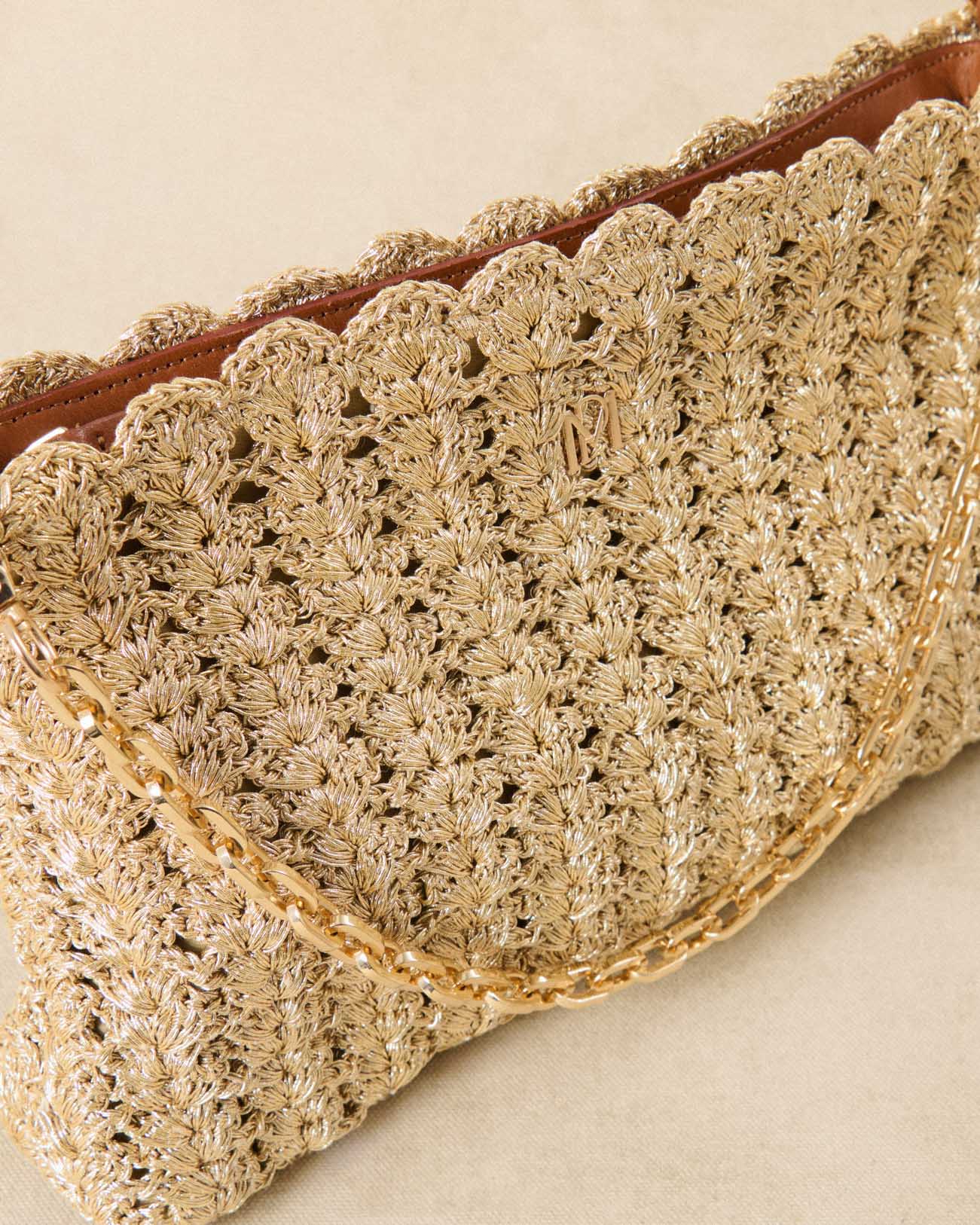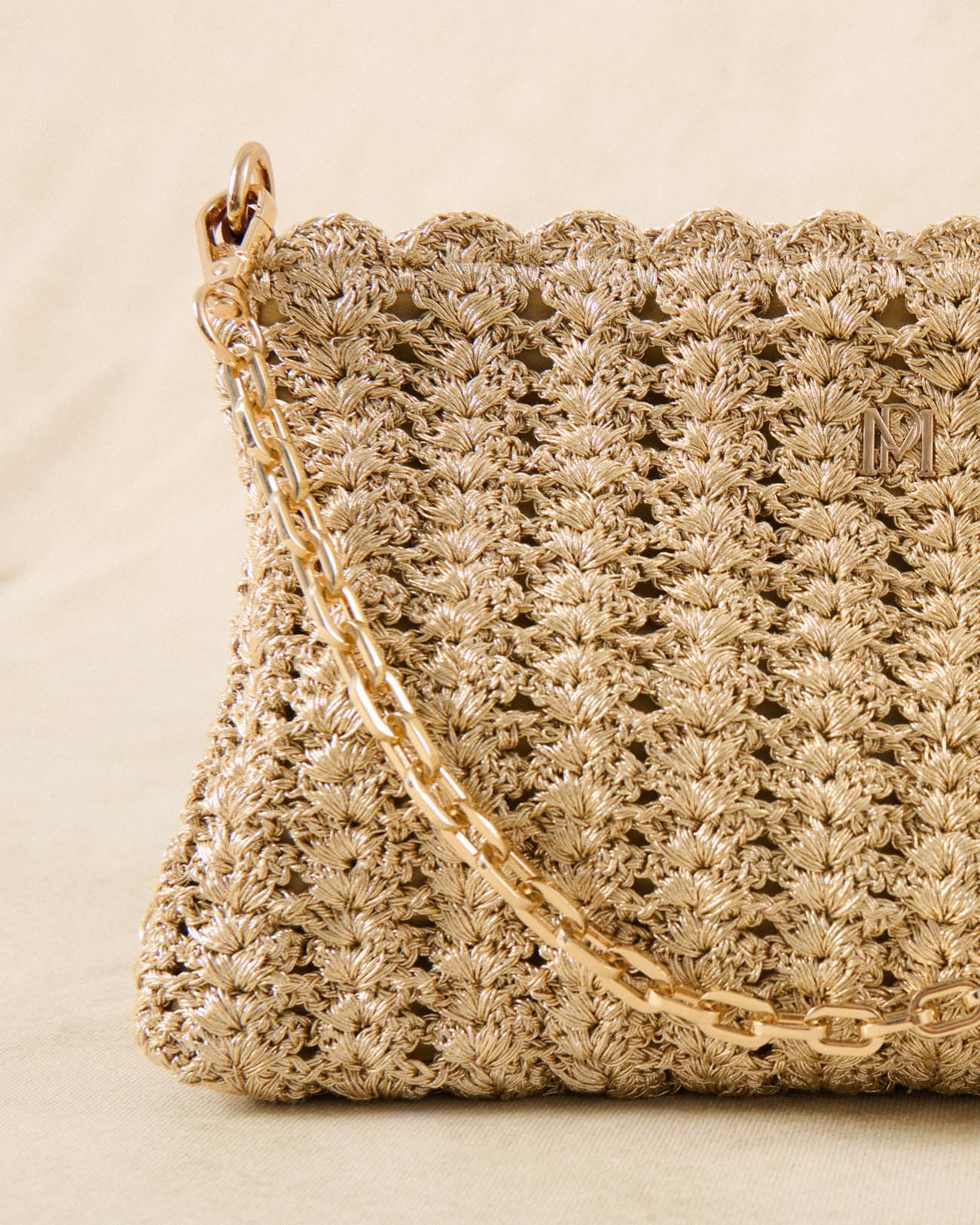 Violette Petit Crochet – Glänzende goldene Häkel-Clutch