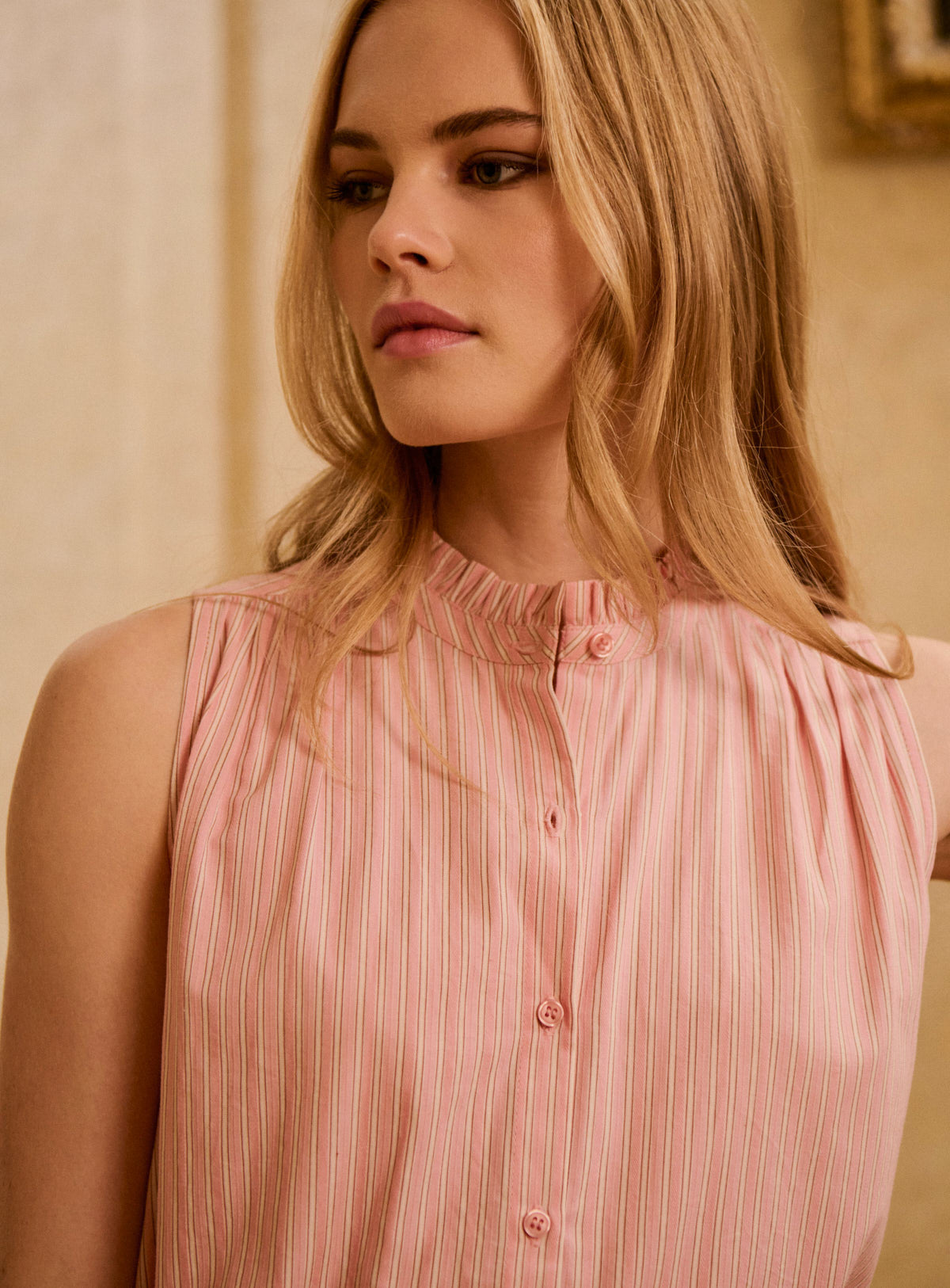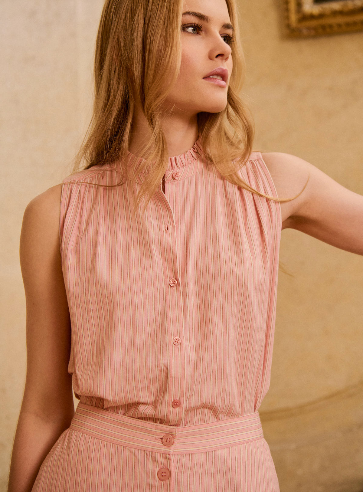 Pourquoi nous l'aimons : Cet ensemble séduit par sa rayure fine et délicate, qui allonge la silhouette avec élégance. Le jeu de lignes apporte structure et légèreté, tandis que la coupe fluide assure un porté confortable et féminin. Une allure facile, à porter au quotidien comme pour les beaux moments de la saison. Ce top au col montant froncé ajoute une touche pétillante à vos tenues grâce à son imprimé rayé délicat. Idéale pour une tenue de saison, ce top s'accorde parfaitement avec la jupe JEANNE pour un total look rayé et coloré.