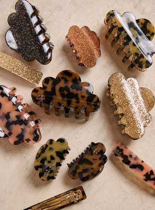 This collaboration gives birth to 3 different accessory models, each available in three elegant & glittery colors.