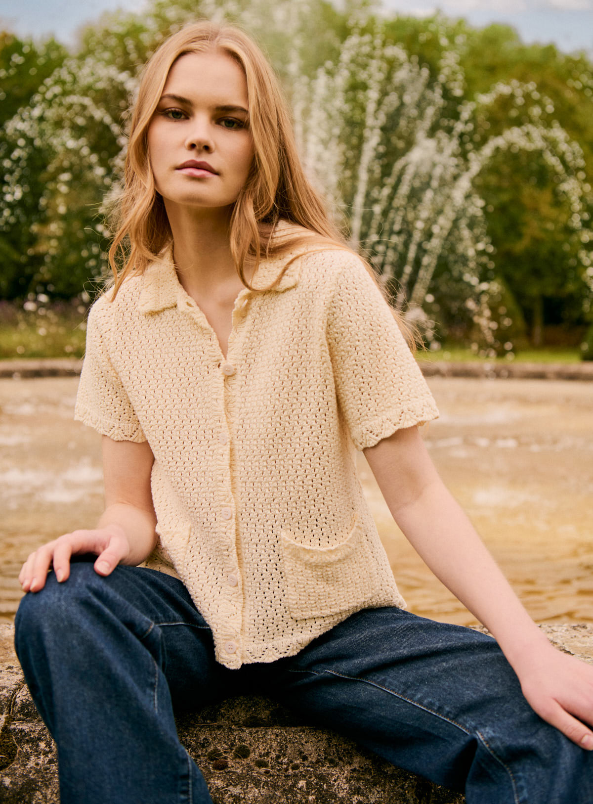 Why we love it: This open-knit shirt combines lightness and structure. Its cropped cut and front pockets give it a modern look, while the button-up opening allows you to wear it closed or layered over a top. An easy-to-wear essential, perfect with high-waisted jeans.