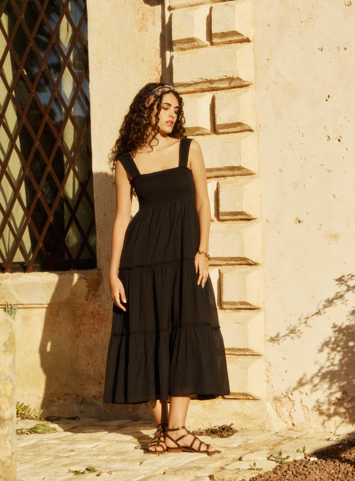 Why we love it: It's back. The iconic RON dress returns this season, true to what made it a success: a flowing, feminine, and effortless look, designed to accompany every moment of summer. With its loose fit and light drape, RON embodies that natural elegance we love to wear from morning to night. With its shirred bodice and fluid cut, this dress is the ideal companion for sunny days. Wear it with a woven basket and leather sandals for an effortless summer silhouette.