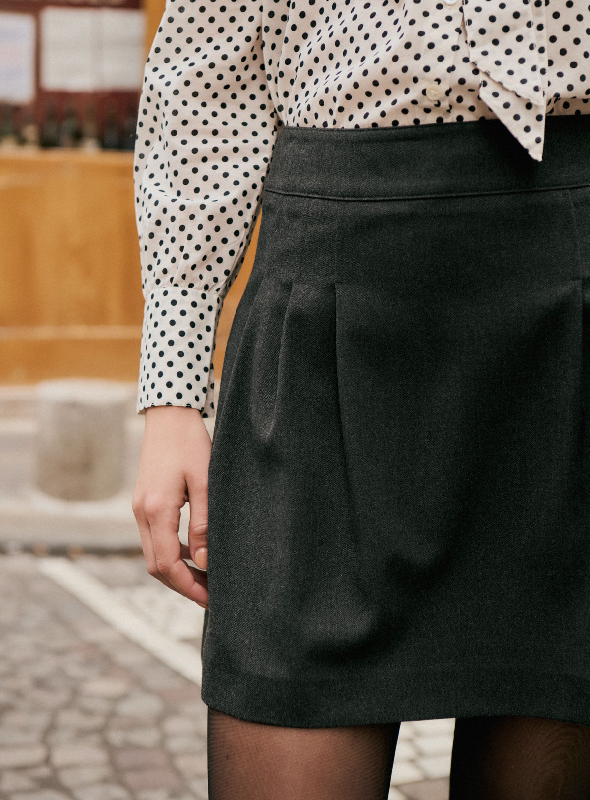 Why we love it: With its timeless gray hue and slightly flared straight cut, this short skirt flatters your figure with simplicity and elegance. Its delicate pleats at the front and back add movement. Easy to pair, it can be worn with the Tory shirt for a chic and modern look, or with a fitted sweater for a more casual style.
