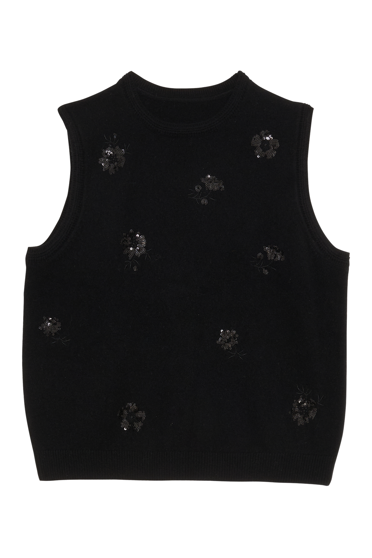Why we love it: This black cashmere sleeveless top combines elegance and subtle sparkle thanks to the sequined flowers on the front. Made from comfortable fine knit (100% cashmere), it can be worn alone or as a twin set with our Myriam cardigan for a chic and modern look perfect for parties. Ideally paired with the Paco fine-knit trousers for comfortable evening wear, or with our bubble skirt for an ultra-feminine look, this top quickly becomes a wardrobe essential for creating elegant evening looks and trendy party outfits for women.