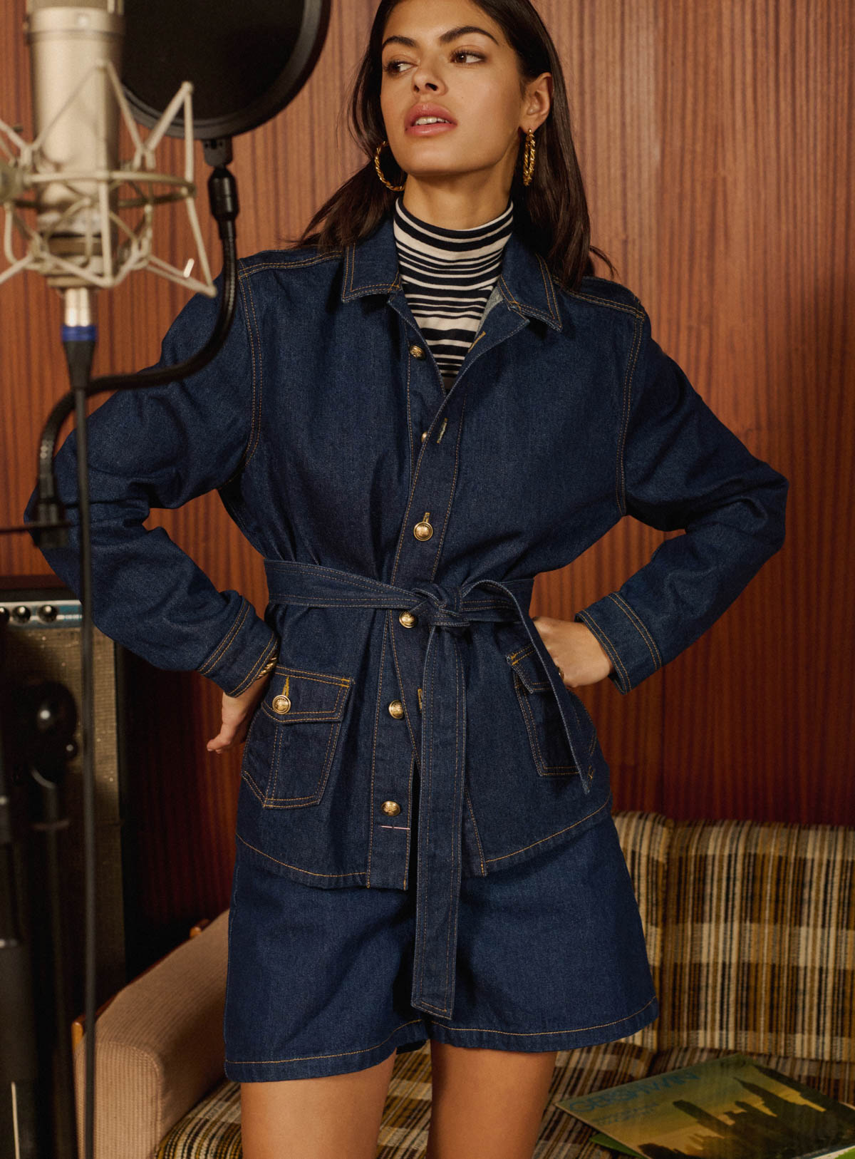 Why we love it: This raw denim jacket combines simplicity and character. Its patch pockets and exposed seams add a modern touch to your silhouette. Perfect for a casual chic look, it pairs equally well with white pants or raw denim shorts for a total denim look.