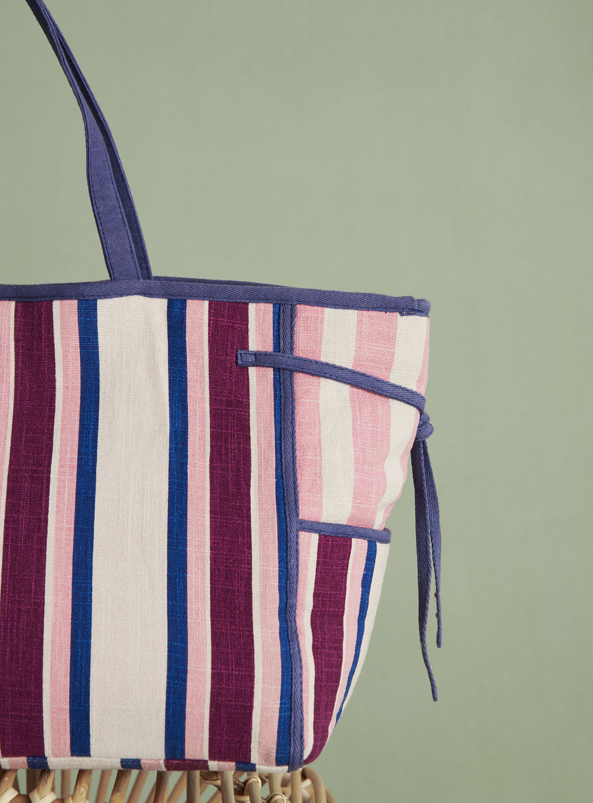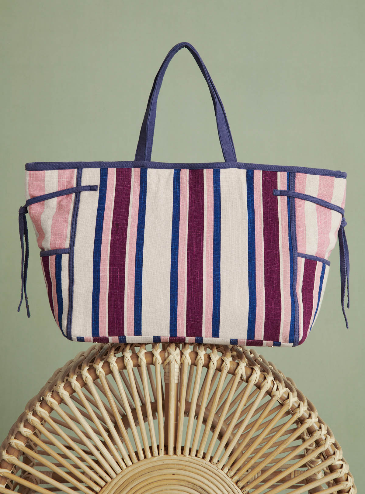 Cabas en toile avec des petites anses. Fermeture aimantée. Avec des poches sur le côté. Logo en cuir cousu à l'extérieur.