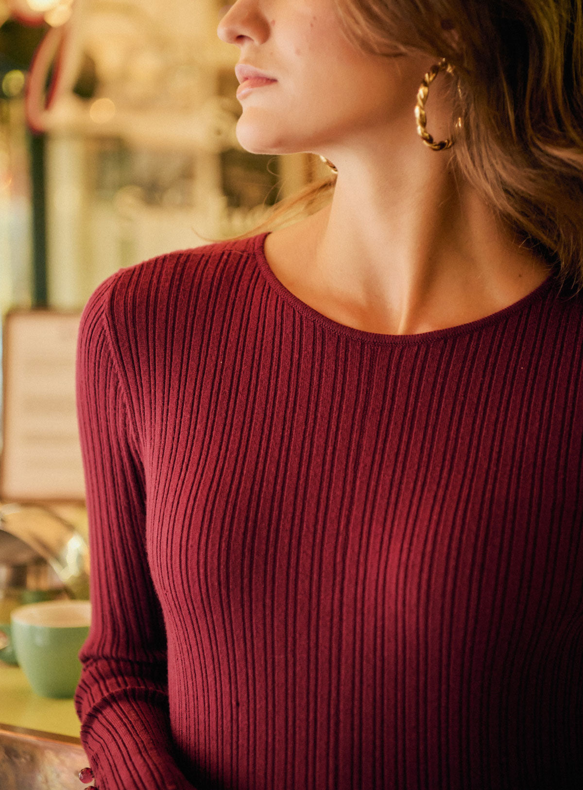 Rosalia - Robe longue en maille côtelée avec détails délicats - Bordeaux