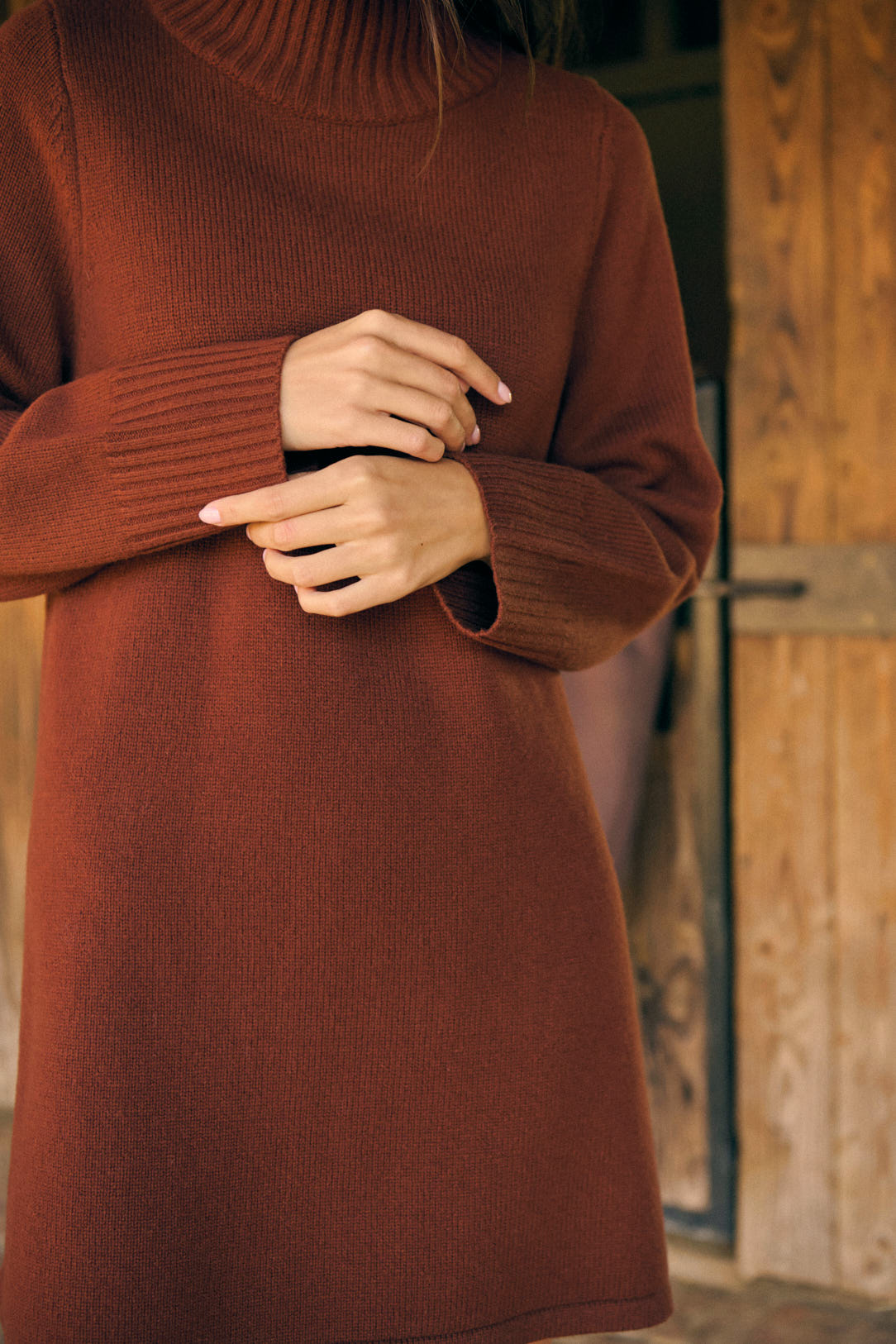Pourquoi nous l'aimons : LA robe pull à col montant ultra cocooning pour l'hiver. Portée avec nos bottes Clément, elle mêle une touche rock à une allure féminine et confortable, pour rester au chaud avec style.