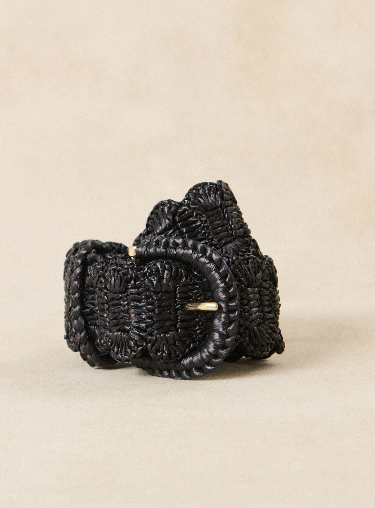 Pourquoi nous l'aimons : Son tressage façon crochet en raphia noir apporte une touche bohème et authentique. Idéale pour structurer une robe vaporeuse ou twister un jean taille haute avec légèreté.