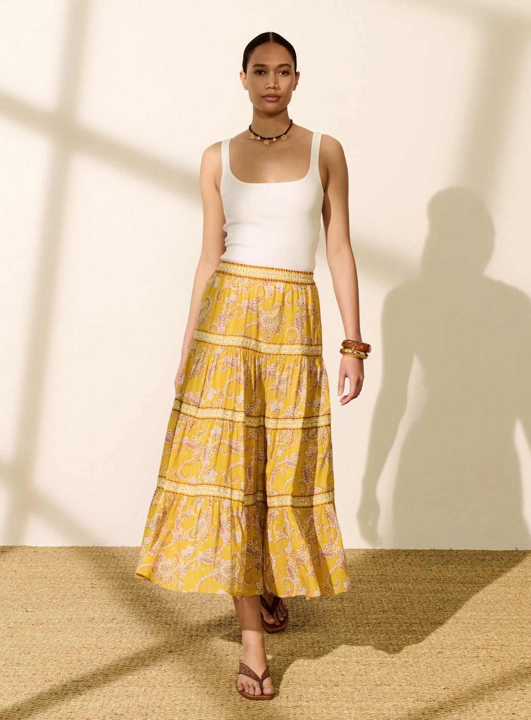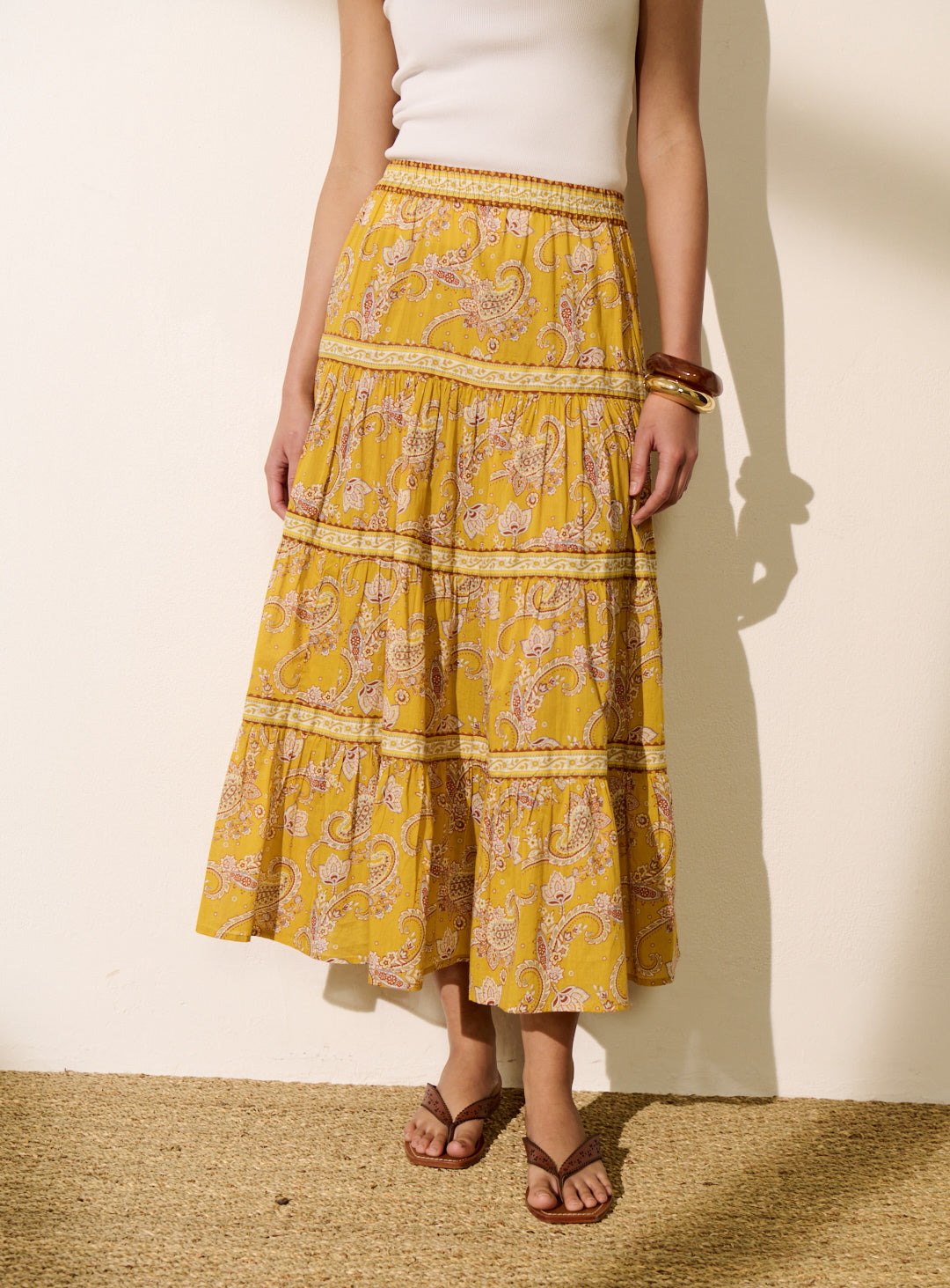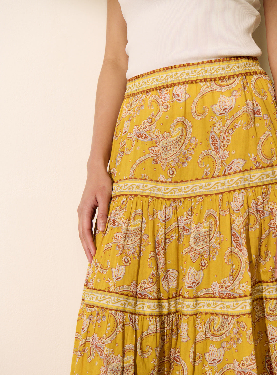 Pourquoi nous l'aimons : Avec son imprimé coloré et sa coupe fluide, cette jupe est parfaite pour une silhouette féminine et élégante. Pour un total look affirmé, associez la jupe à la blouse TEA. Légère et agréable à porter, elle se mixe facilement avec un top marron, blanc ou noir, pour un look plus épuré. Polyvalente, elle s’adapte à toutes vos envies, du total look assumé à une silhouette plus minimaliste.