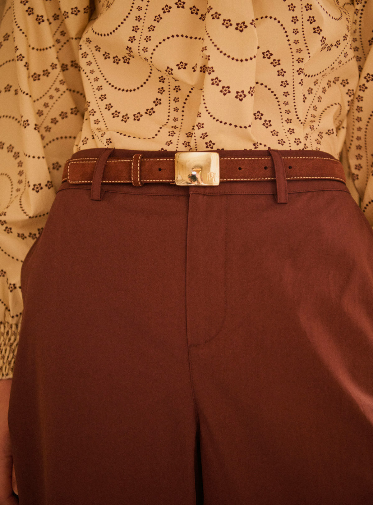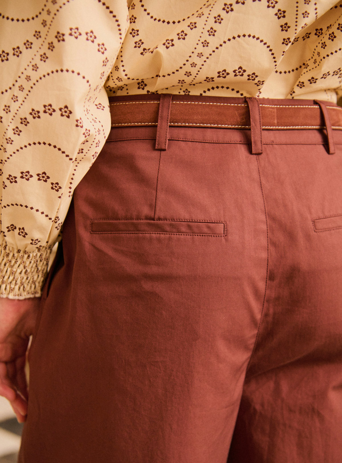 Pourquoi nous l'aimons : Avec couleur intemporelle, ce pantalon signe une allure estivale et affirmée. Sa coupe droite et sa taille haute allongent la silhouette. À porter avec notre blouse CATHY pour une élégance discrète et facile à vivre.
