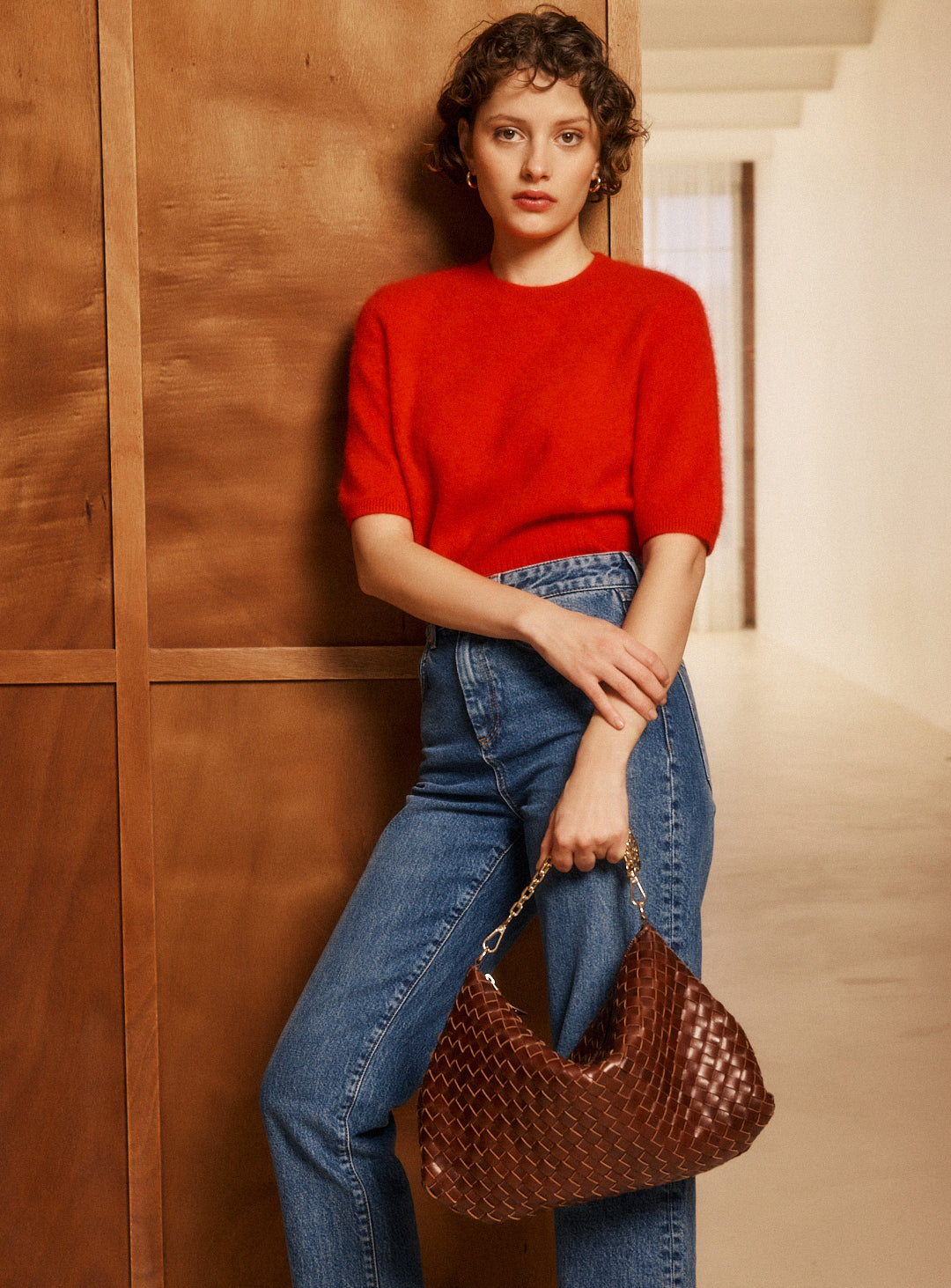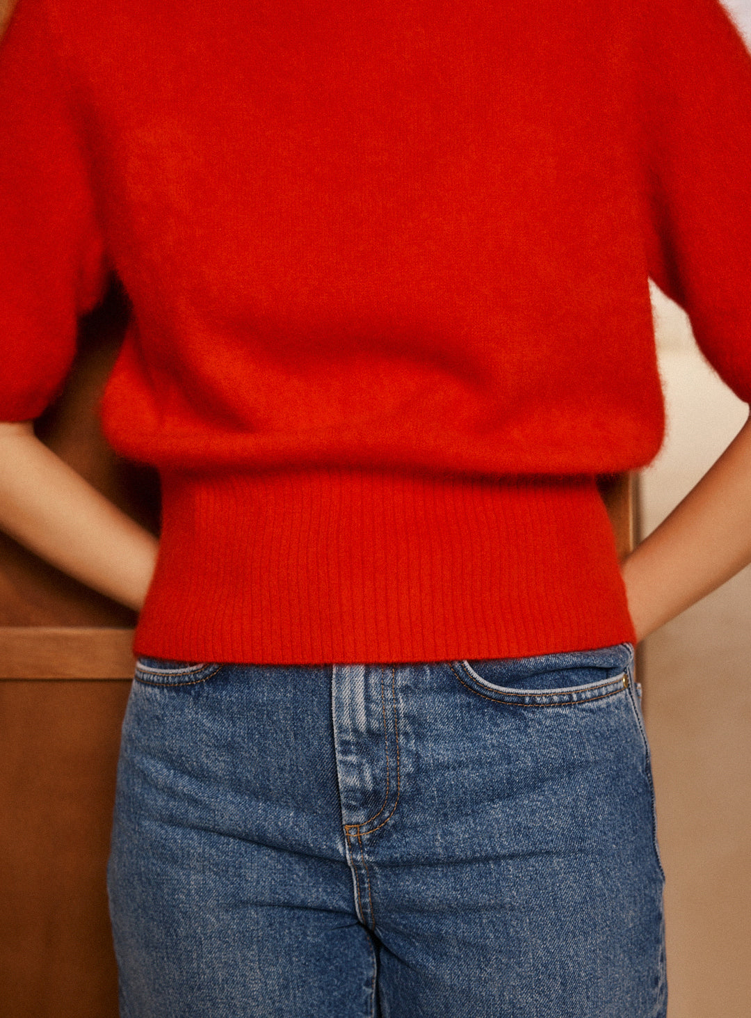 Pourquoi nous l’aimons : MAGGY est le parfait équilibre entre douceur et allure. Son cachemire brossé et ses manches courtes en font une maille facile à porter, idéale en superposition ou seule, pour une silhouette simple mais ultra chic.