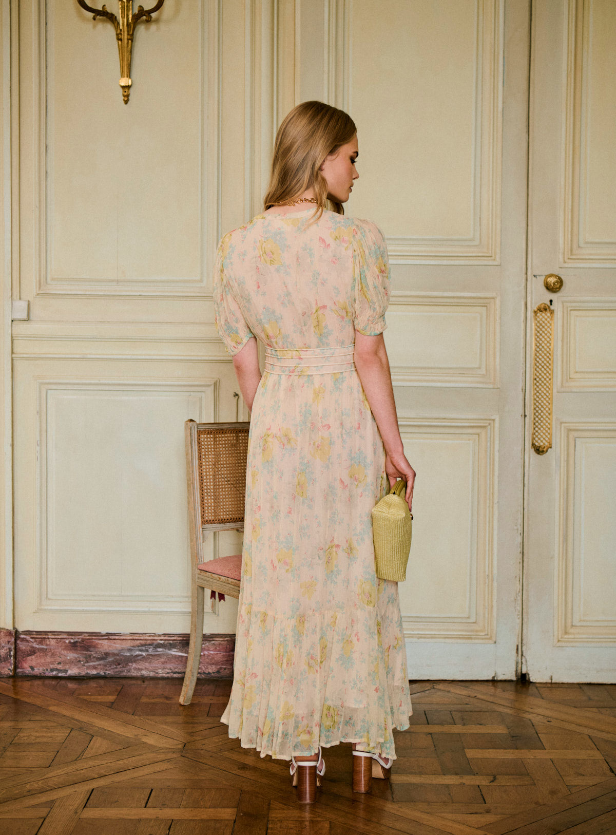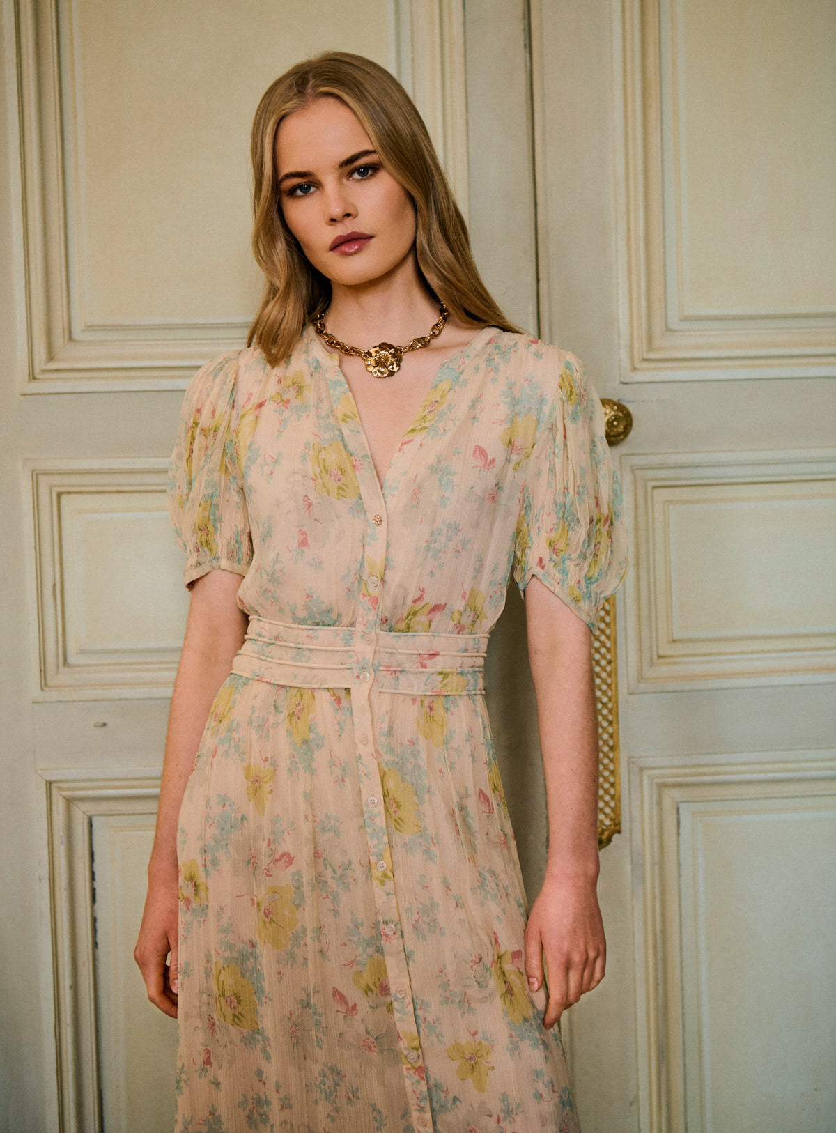 Pourquoi nous l’aimons : La robe longue AMITA évoque les beaux jours avec élégance. Son imprimé délicat et sa fluidité accompagnent chaque mouvement pour une allure douce et aérienne. Un imprimé floral tout en douceur, aux teintes poudrées et délicates. Comme une touche d’aquarelle, une matière fluide et légère… parfait pour l’arrivée des beaux jours.