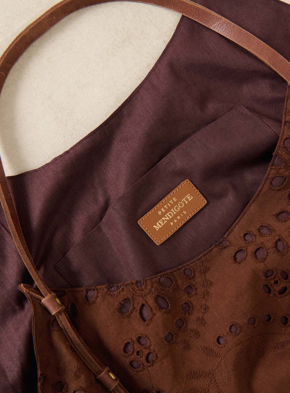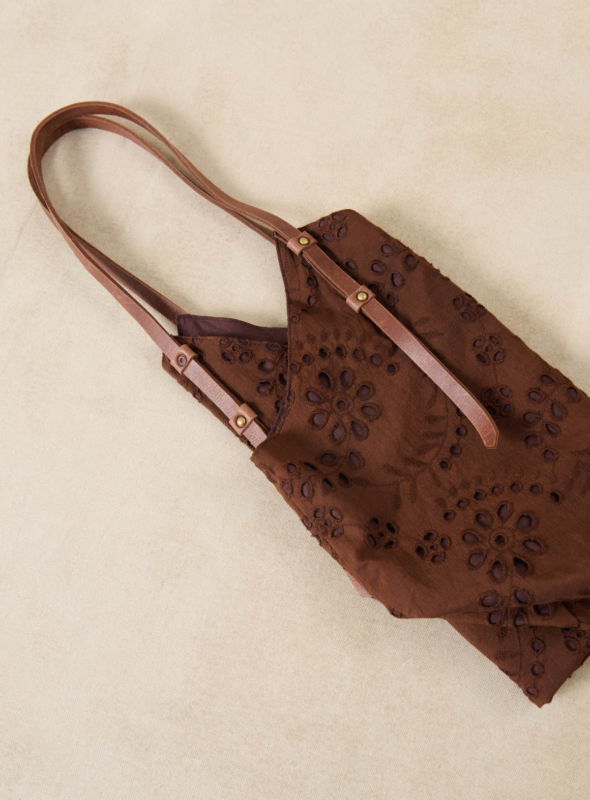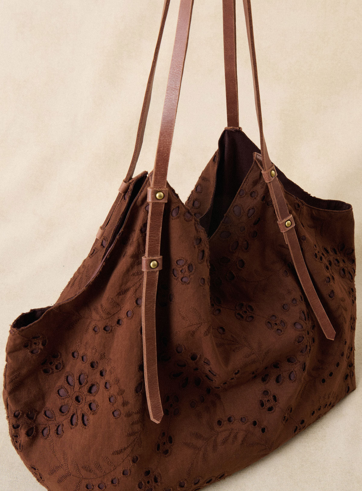 Solene - Grand cabas souple en toile brodé ajouré marron