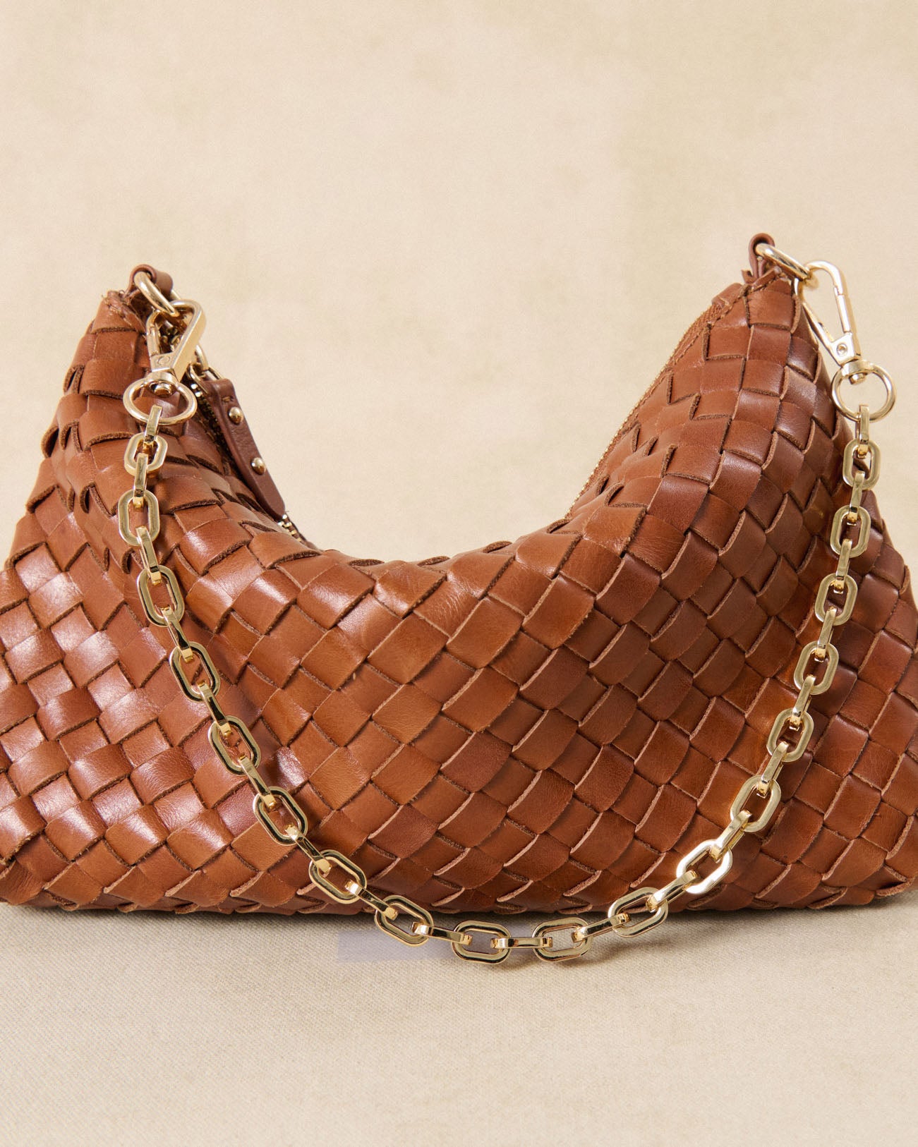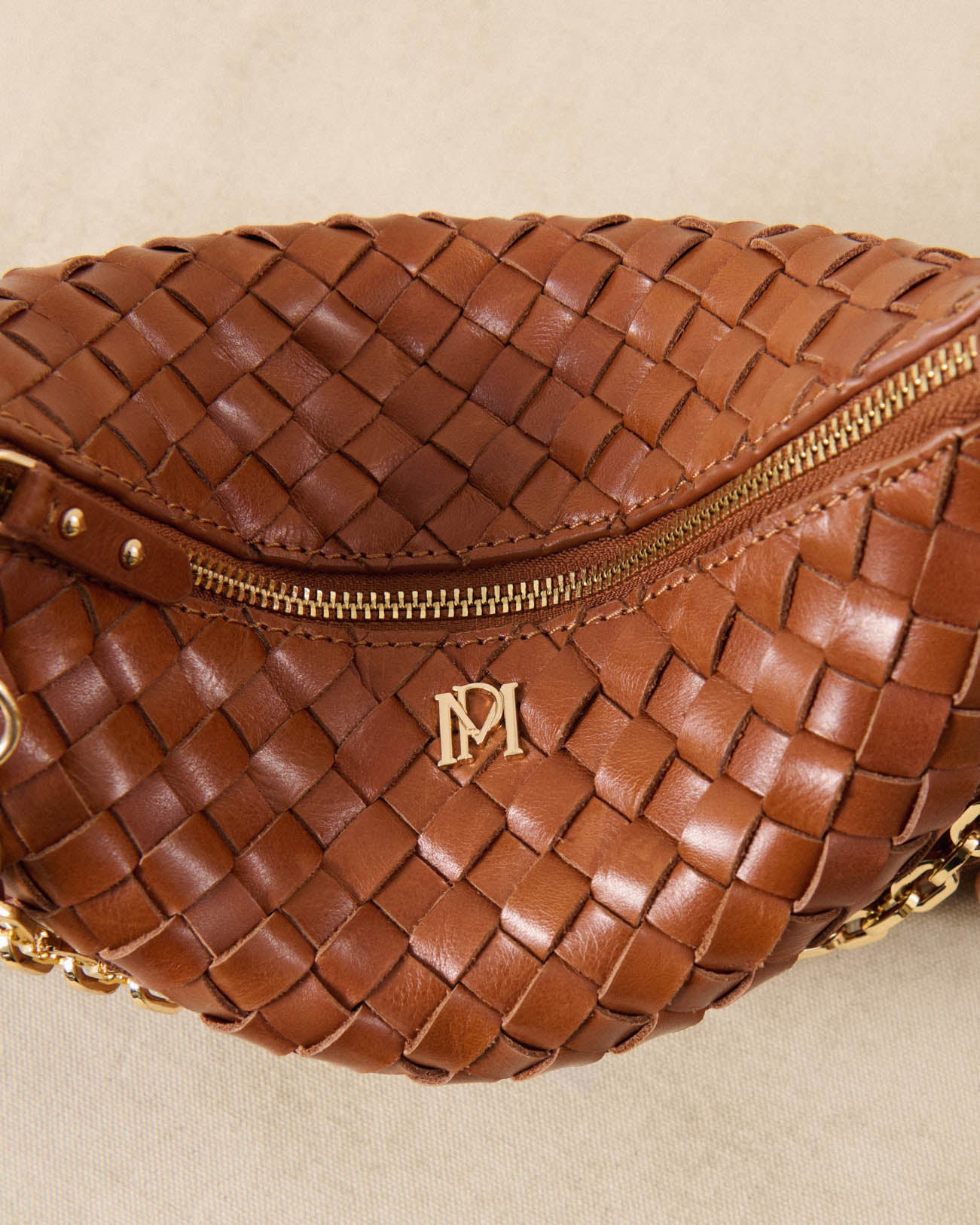 Violette petit tressé - Sac pochette en cuir tressé camel