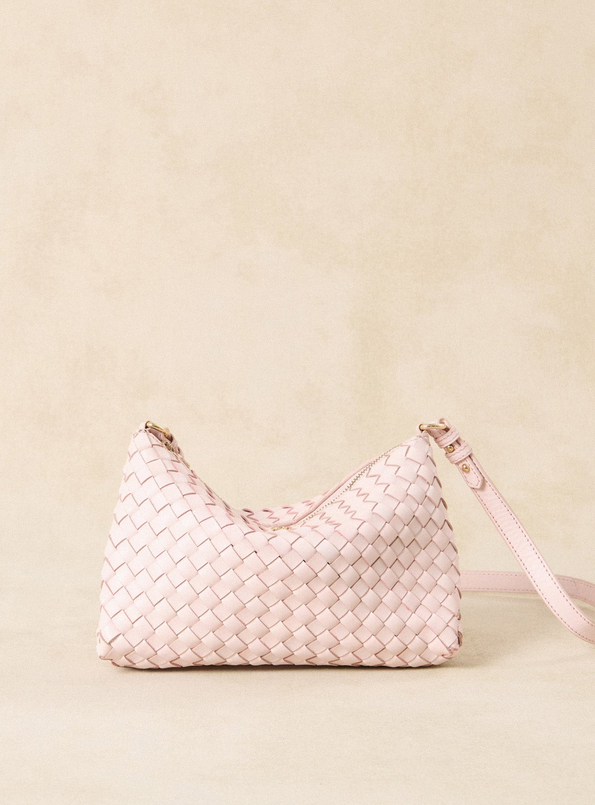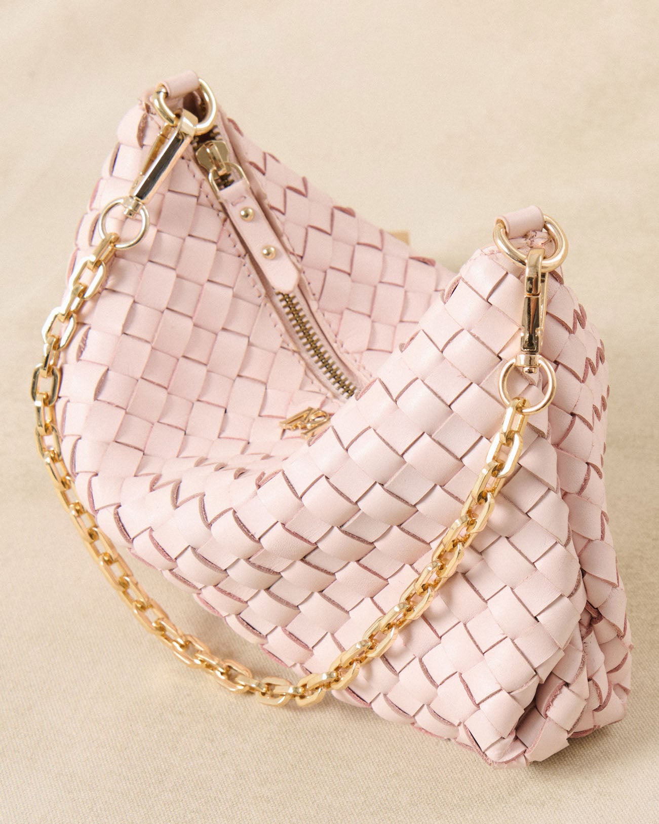 Violette petit tressé - Sac pochette en cuir tressé rose