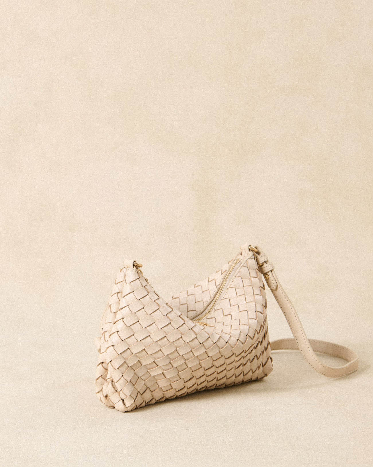 Violette petit tressé - Sac pochette en cuir tressé écru