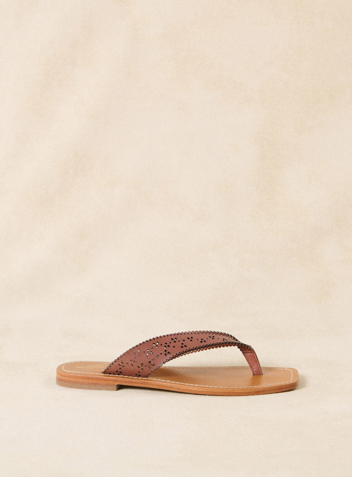 Camille - Tongs en cuir lisse ajouré marron