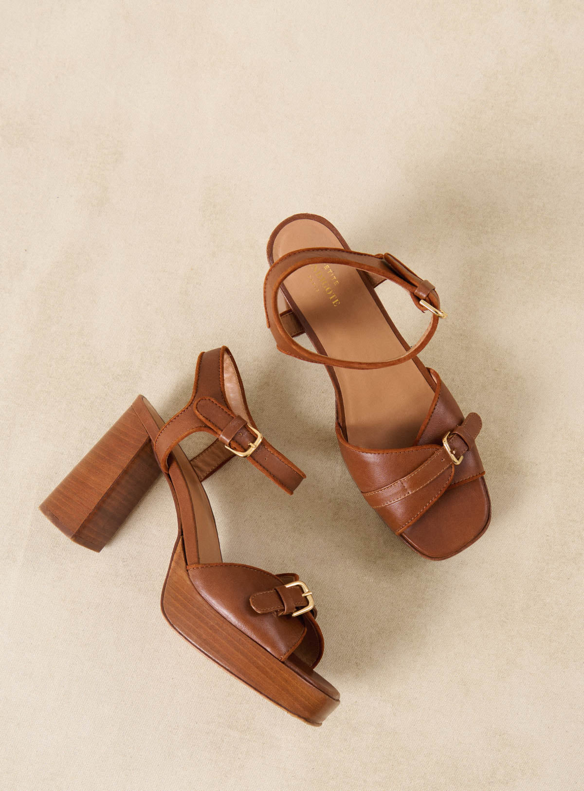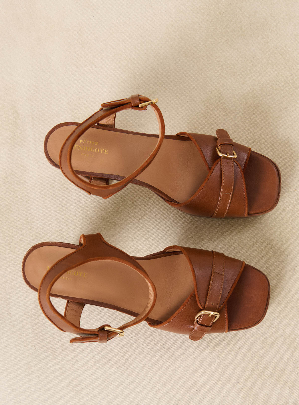 Celeste - Sandales à talons en cuir camel