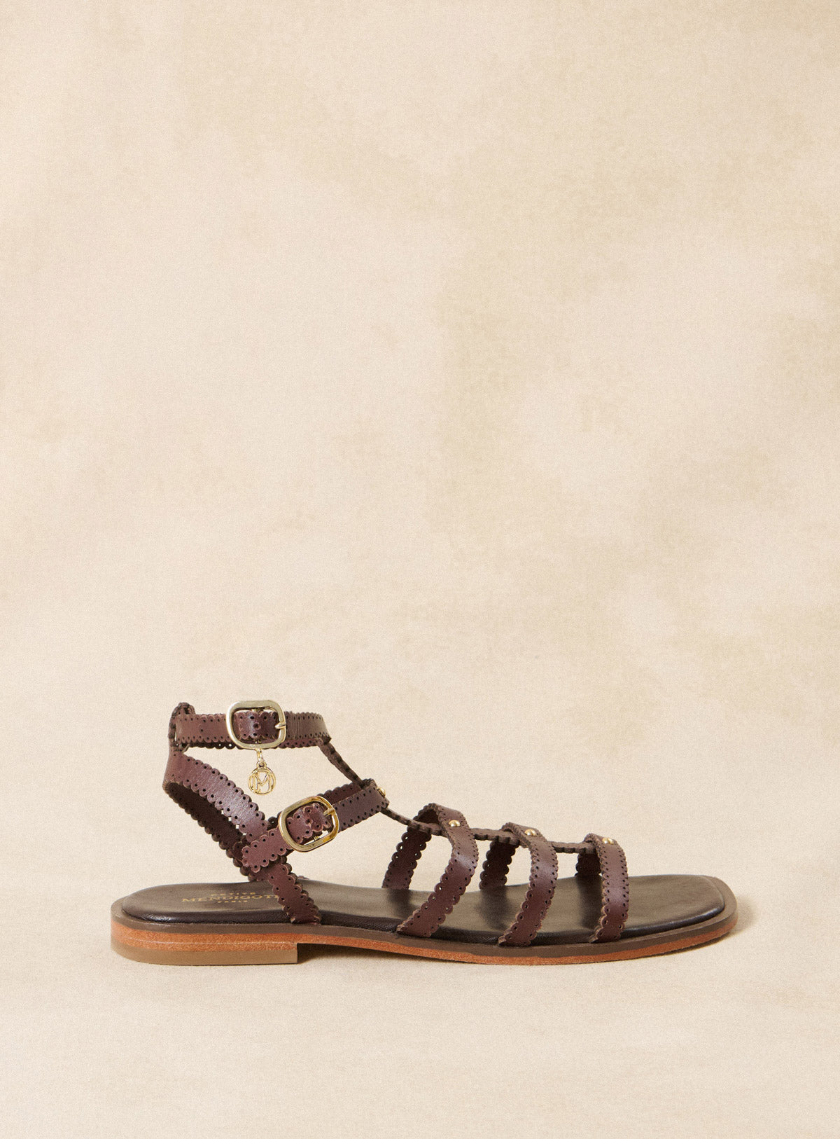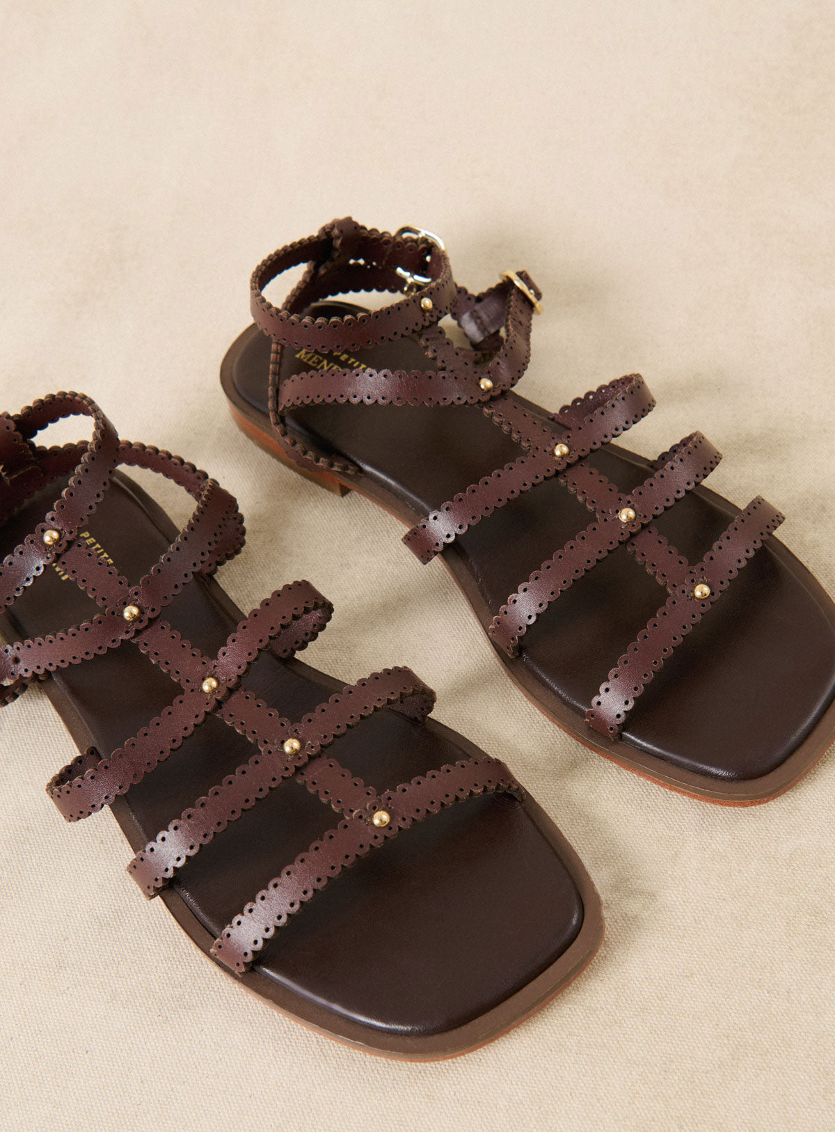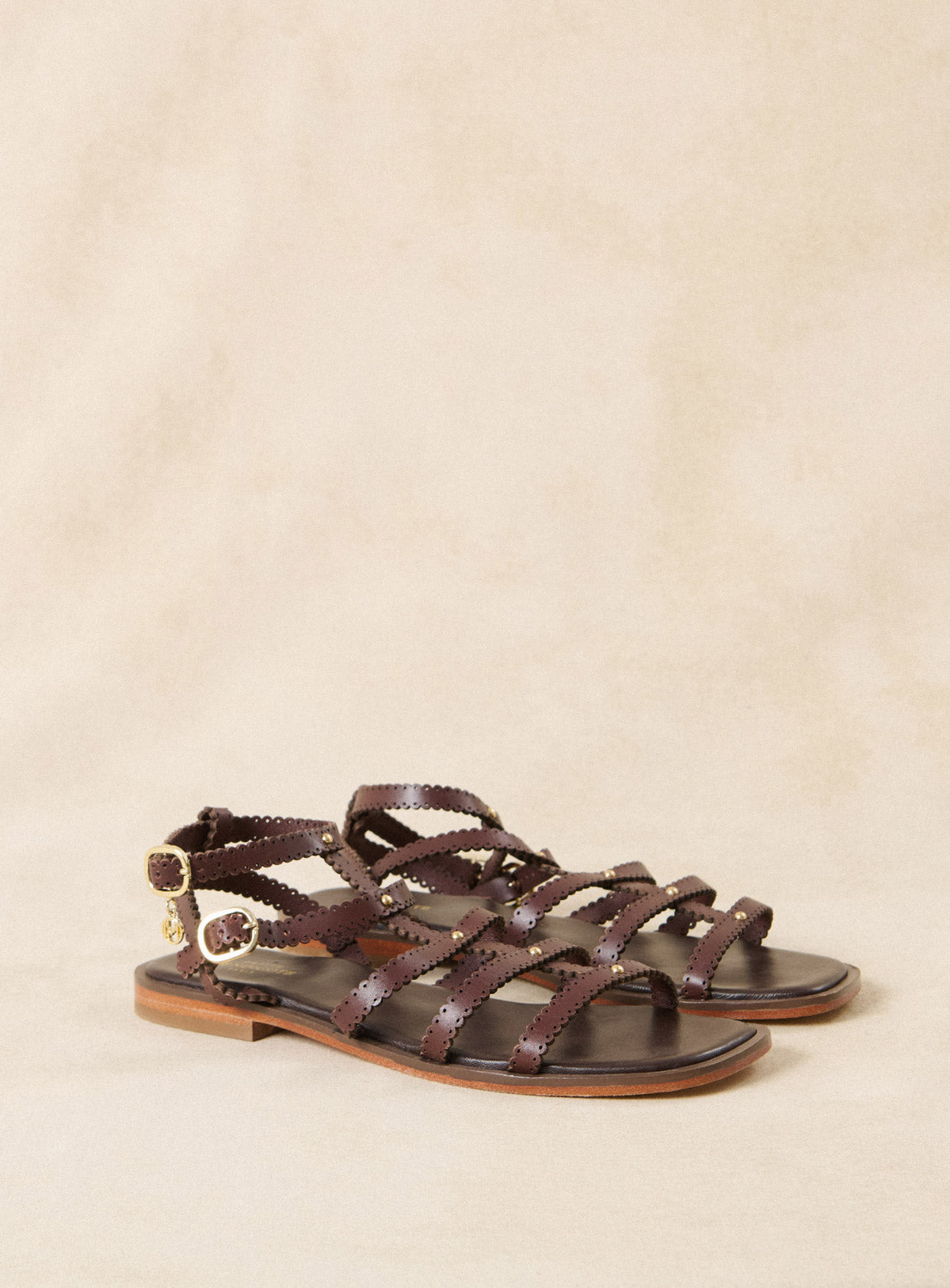 Cleophée - Sandales montantes à multiples brides en cuir marron