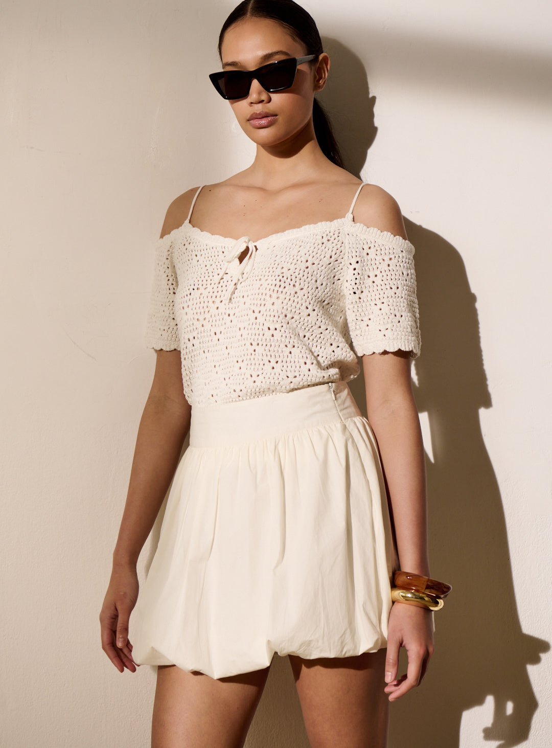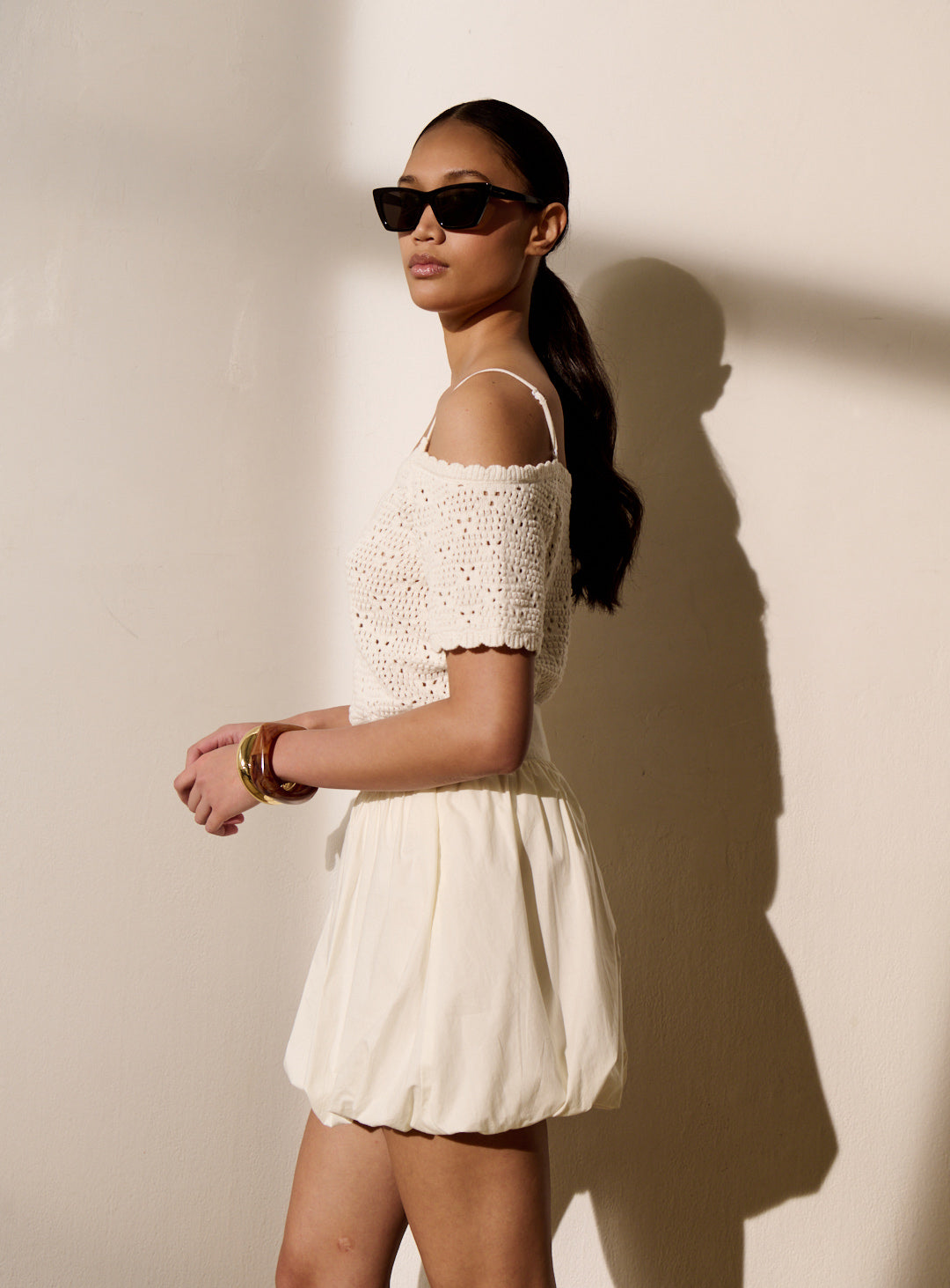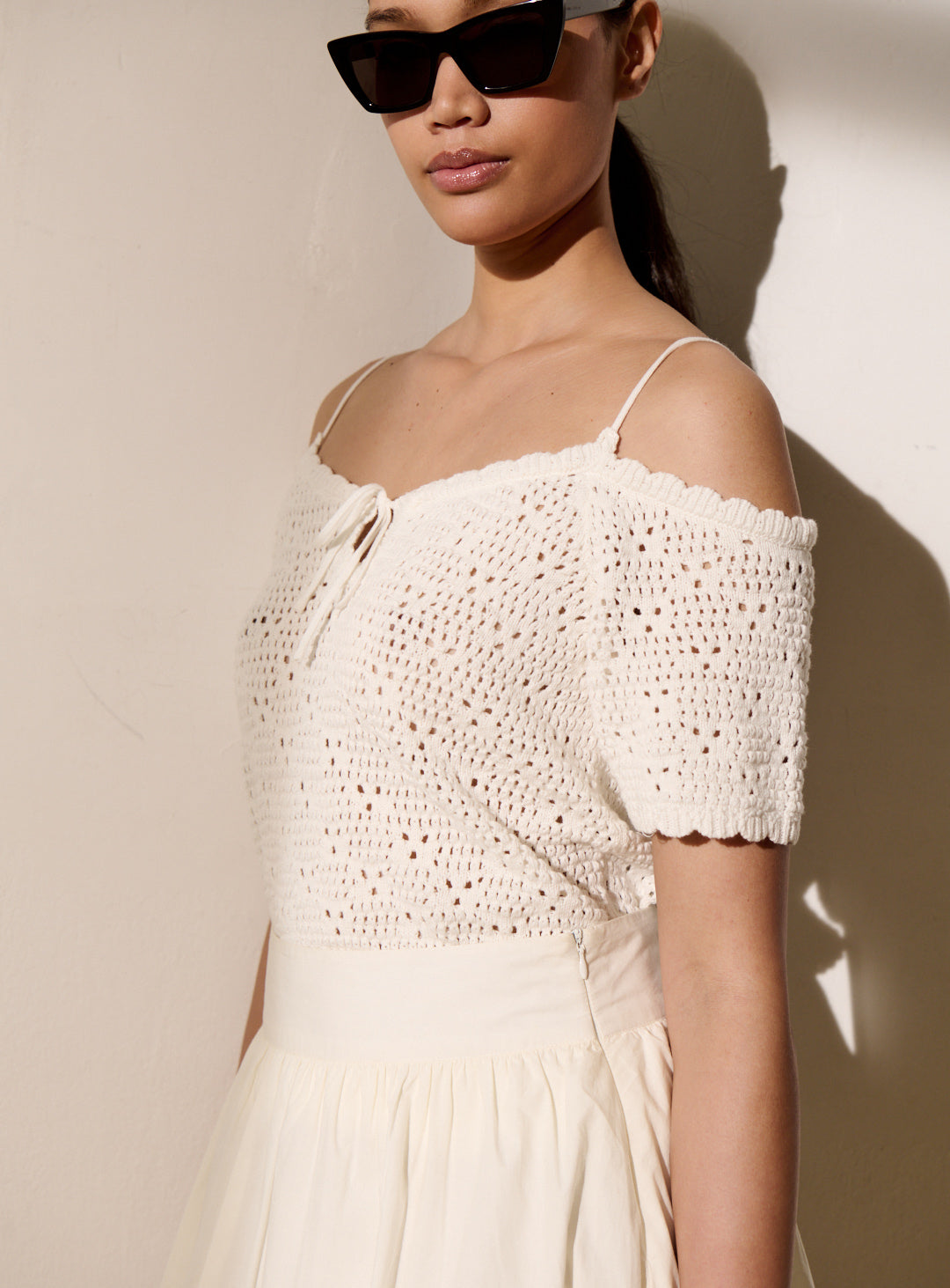 Pourquoi nous l’aimons : Amy, c'est un top entre sensualité et délicatesse. Sa maille ajourée laisse subtilement entrevoir la peau, tandis que les épaules dénudées et les fines bretelles dessinent une silhouette féminine et aérienne. Confectionné dans une matière douce, il se porte facilement, pour des looks à la fois effortless et résolument séduisants.