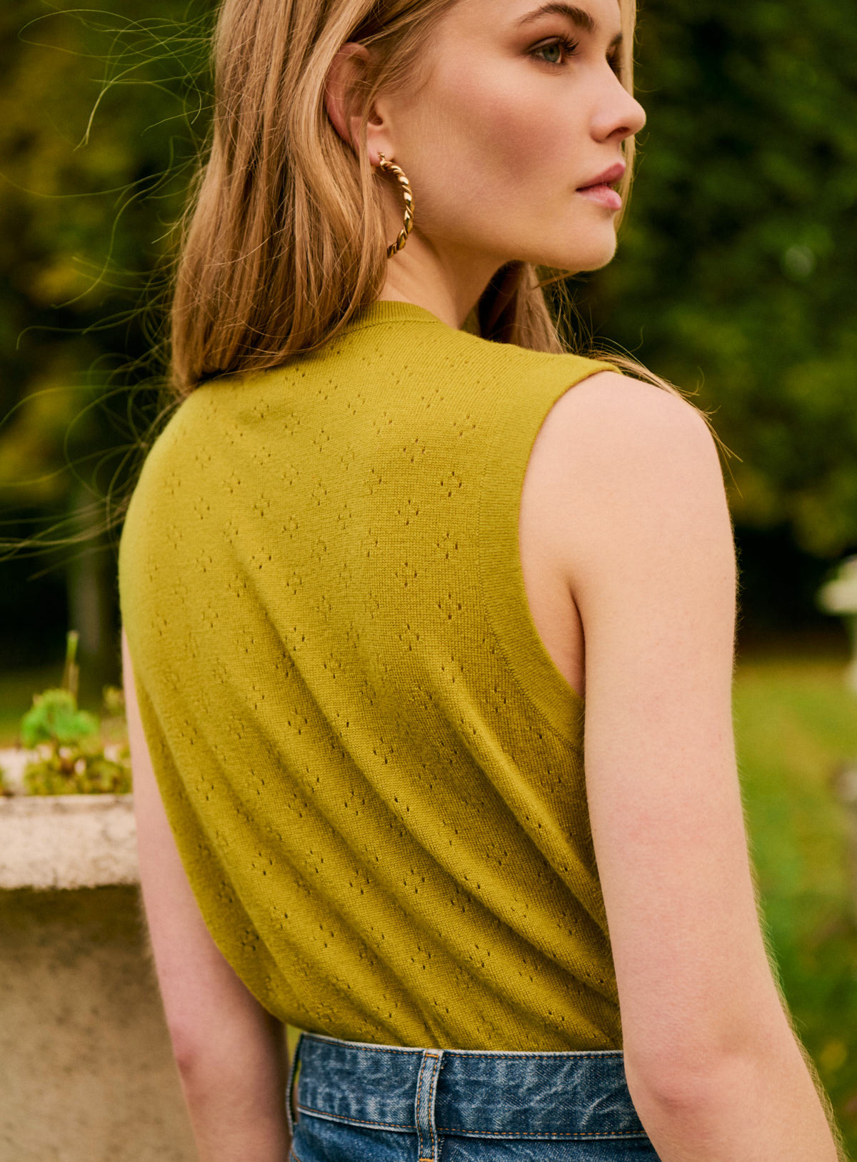 Marine - Top sans manches en maille douce vert pistache